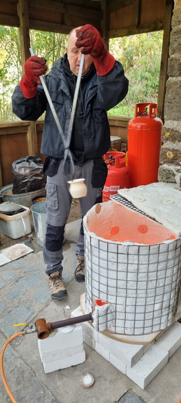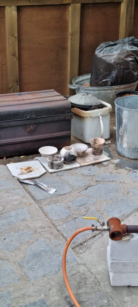 As the flames and smoke enveloped the pots, you could see why people describe this as the most exciting part of the process. The lack of oxygen during this stage affects the colours and textures of the glaze, producing metallic flashes, smoky tones, and delicate crackle patterns.
