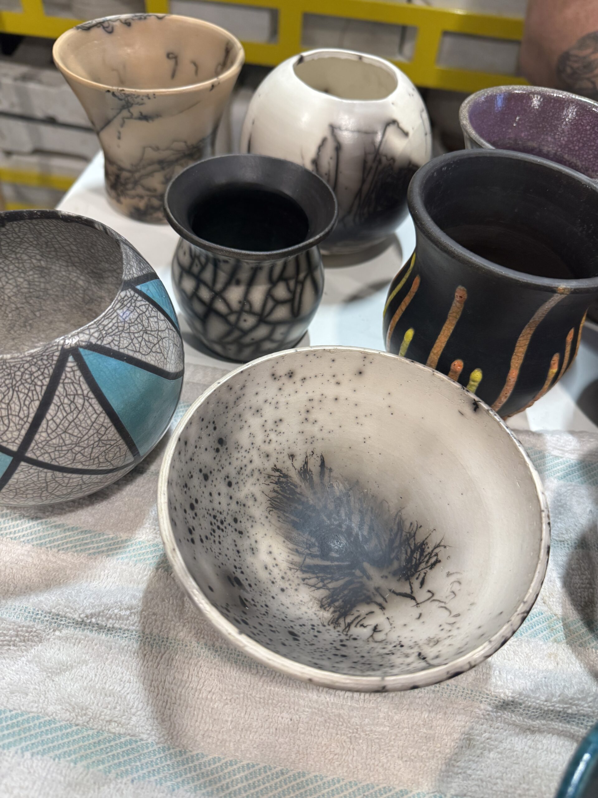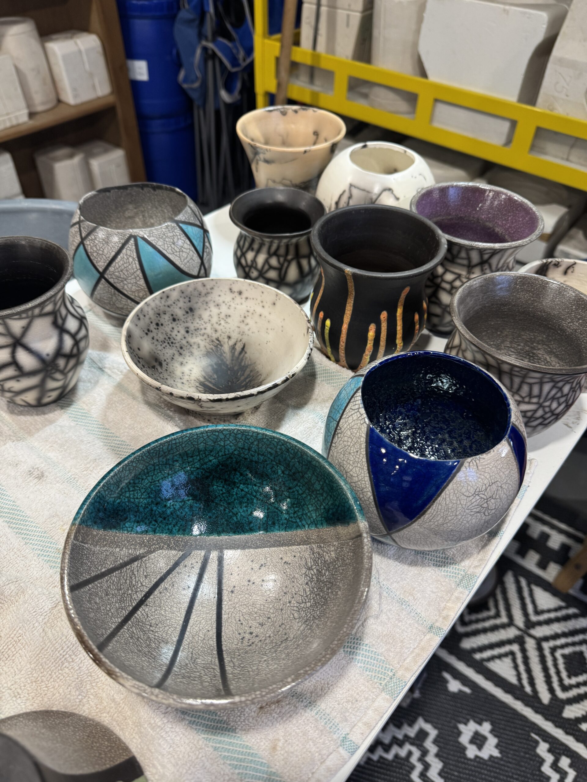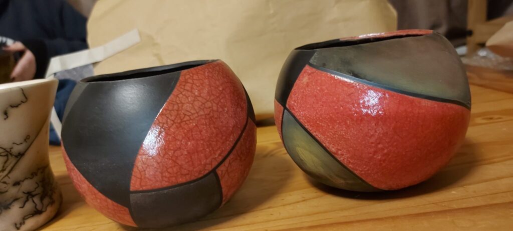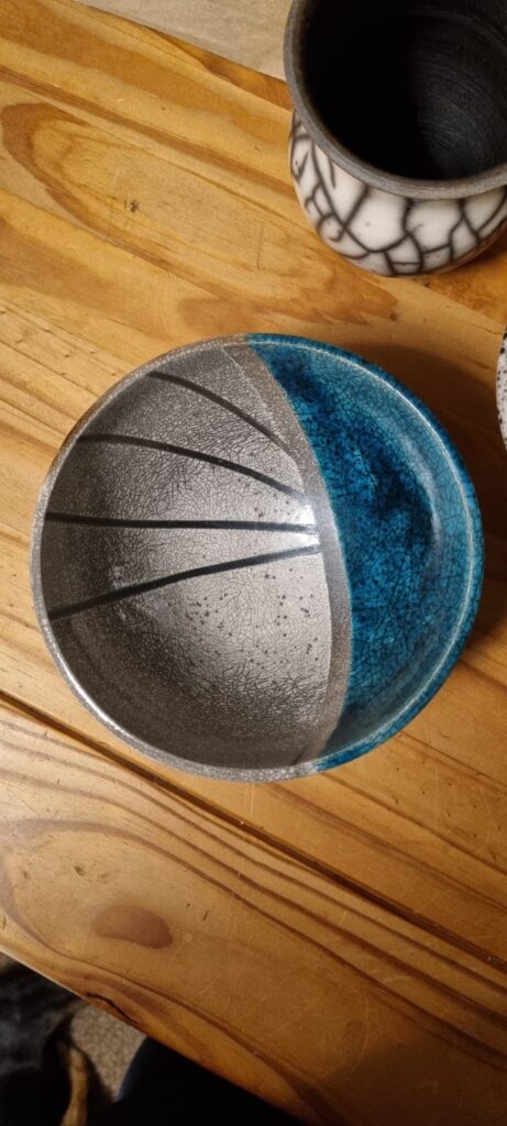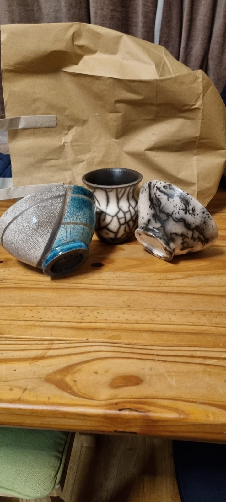 One of the joys of Raku is that no two pieces turn out the same. When our pots were cleaned and revealed, it was amazing to see the variations: colours we hadn’t expected, patterns we hadn’t planned, and surfaces shaped by fire and chance. That unpredictability is part of the magic — the process embraces a little chaos, and the results feel personal and one-of-a-kind.