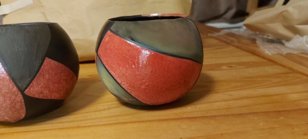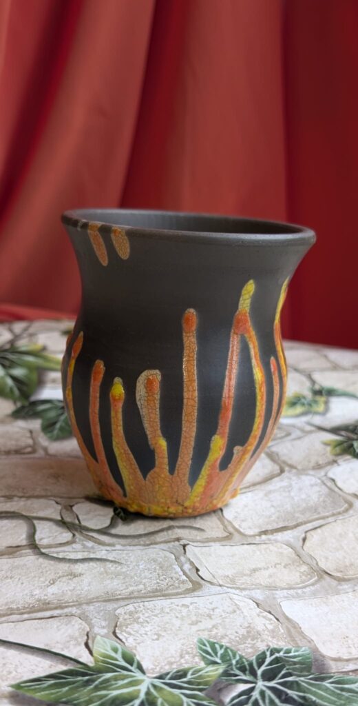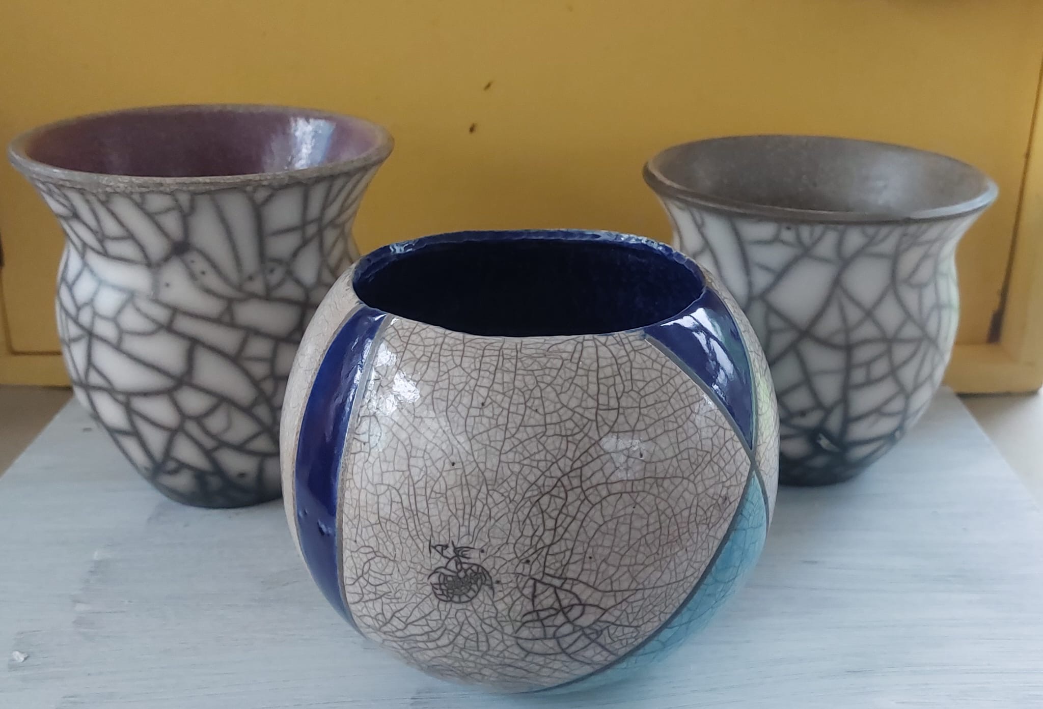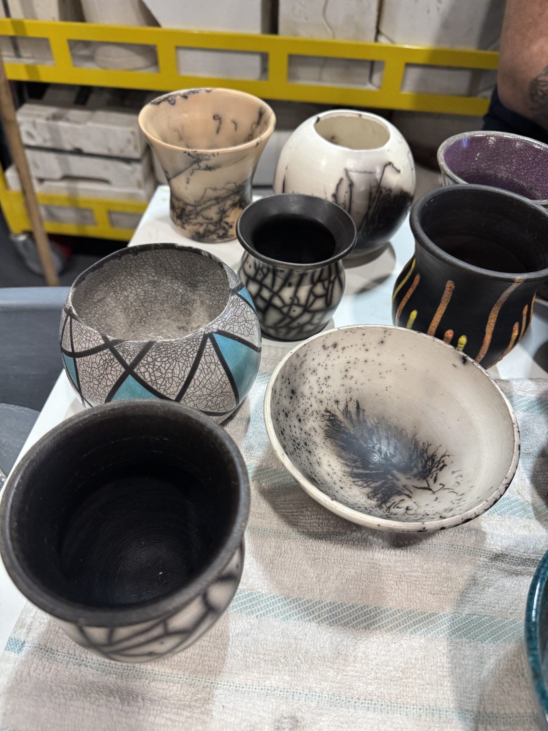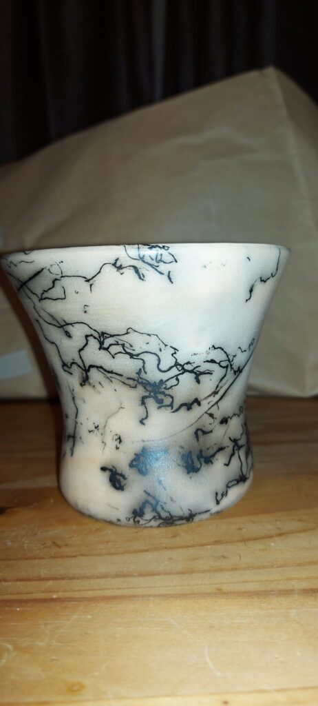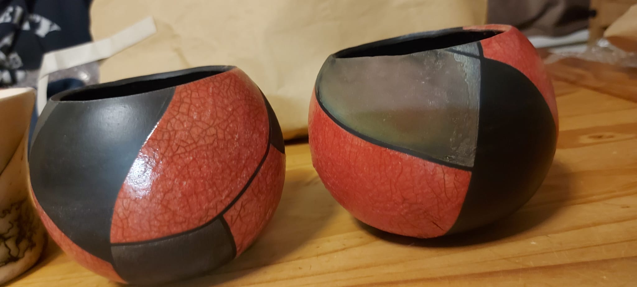 One of the joys of Raku is that no two pieces turn out the same. When our pots were cleaned and revealed, it was amazing to see the variations: colours we hadn’t expected, patterns we hadn’t planned, and surfaces shaped by fire and chance. That unpredictability is part of the magic — the process embraces a little chaos, and the results feel personal and one-of-a-kind.