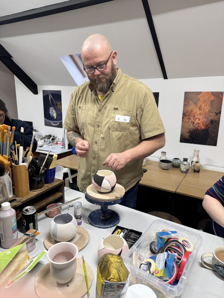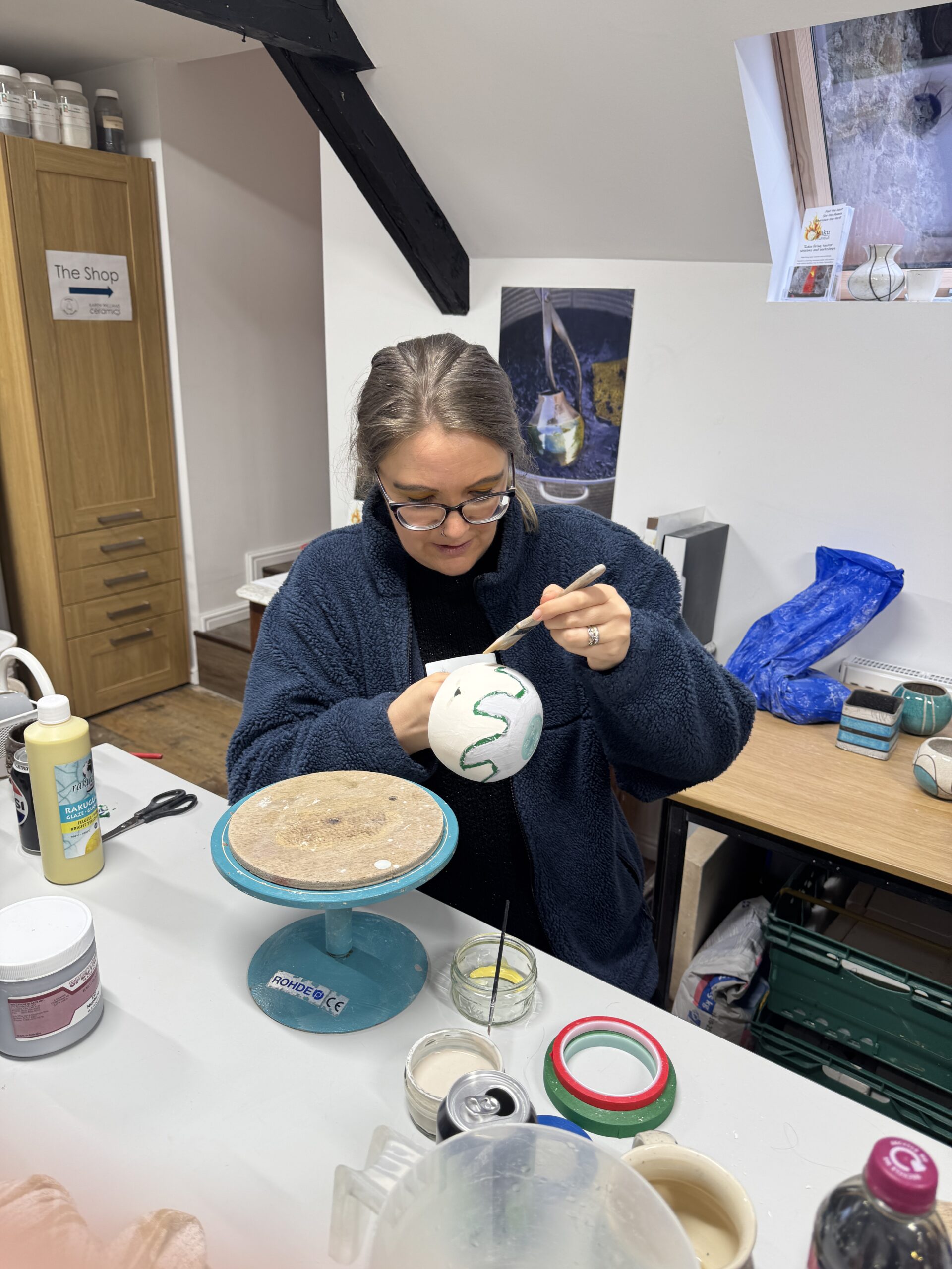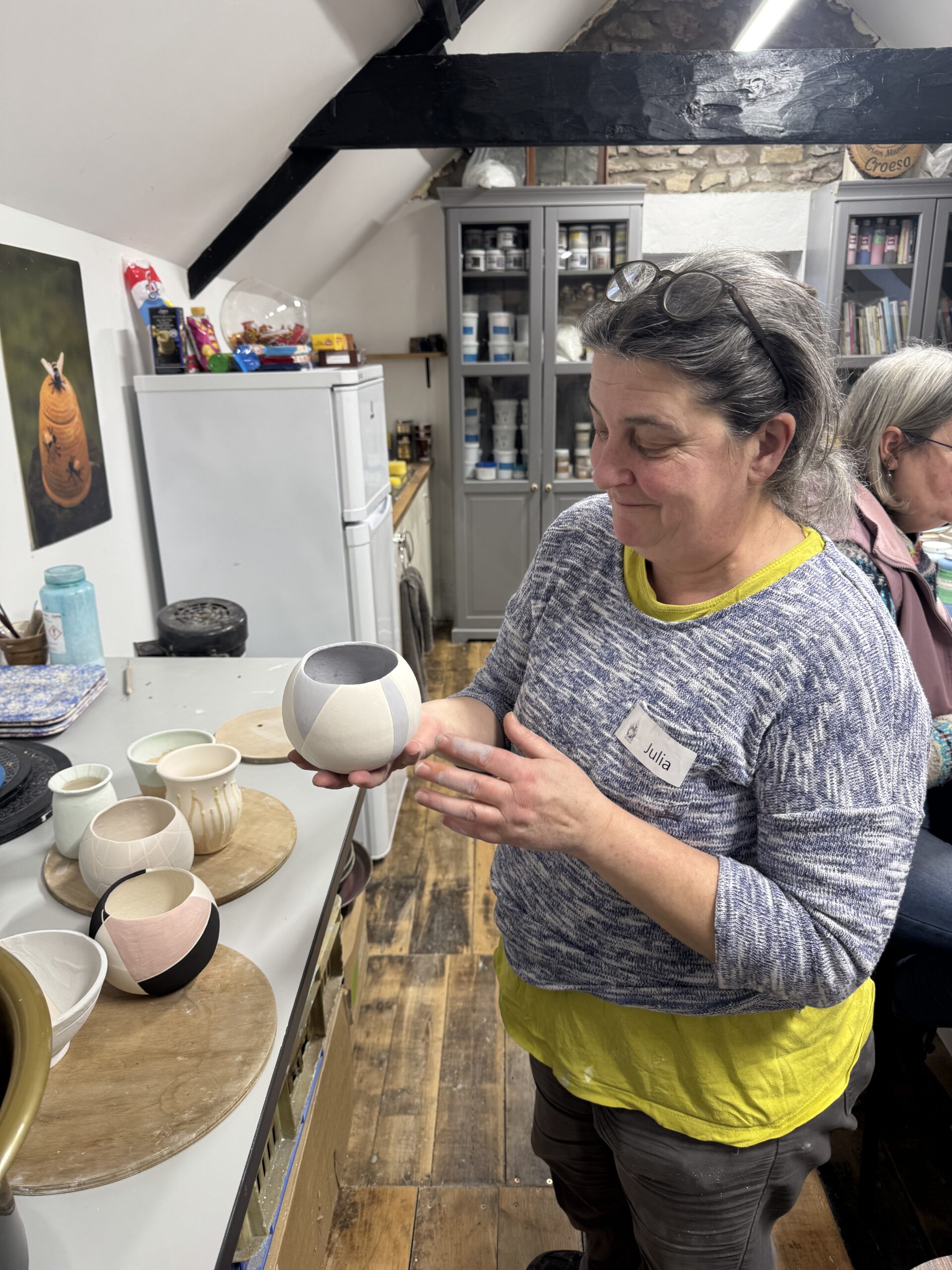 The day began with introductions, a safety briefing, and a clear explanation of how everything would work — reassuring for beginners like us. Adrian and Karen provided all the materials and guided us step-by-step through decorating and glazing our pots, making sure we felt confident before the firing began. Their sessions are designed so anyone can join in, whether you’ve done pottery before or not, with small groups meaning plenty of support and attention throughout. It never felt rushed or intimidating — just a friendly environment where questions were welcomed and enthusiasm encouraged.