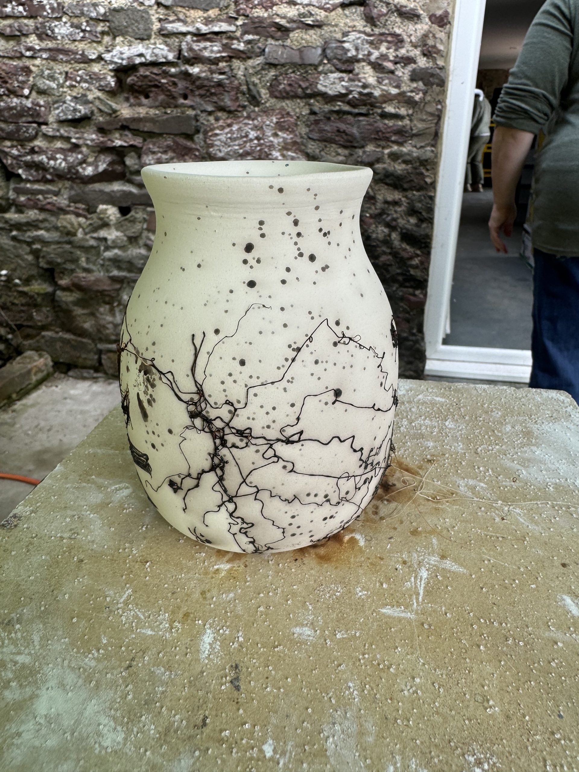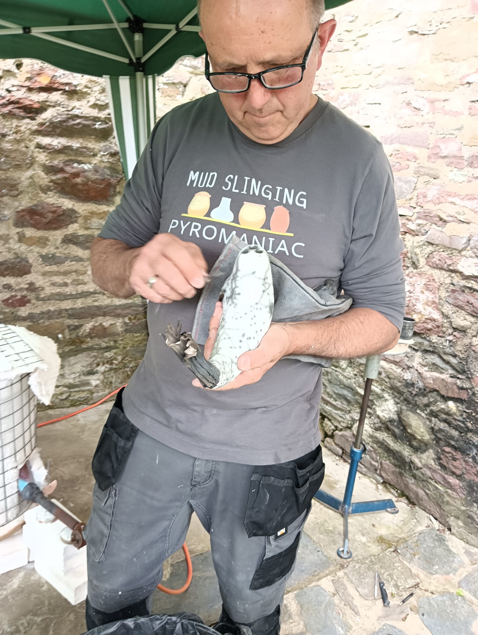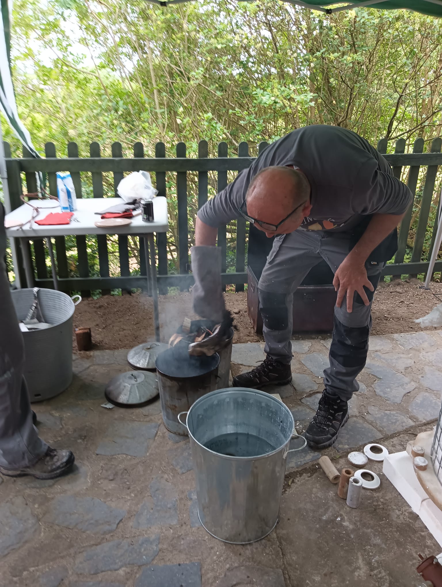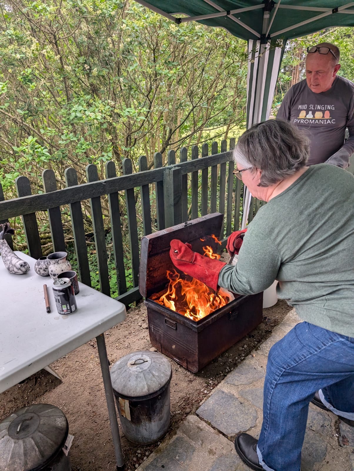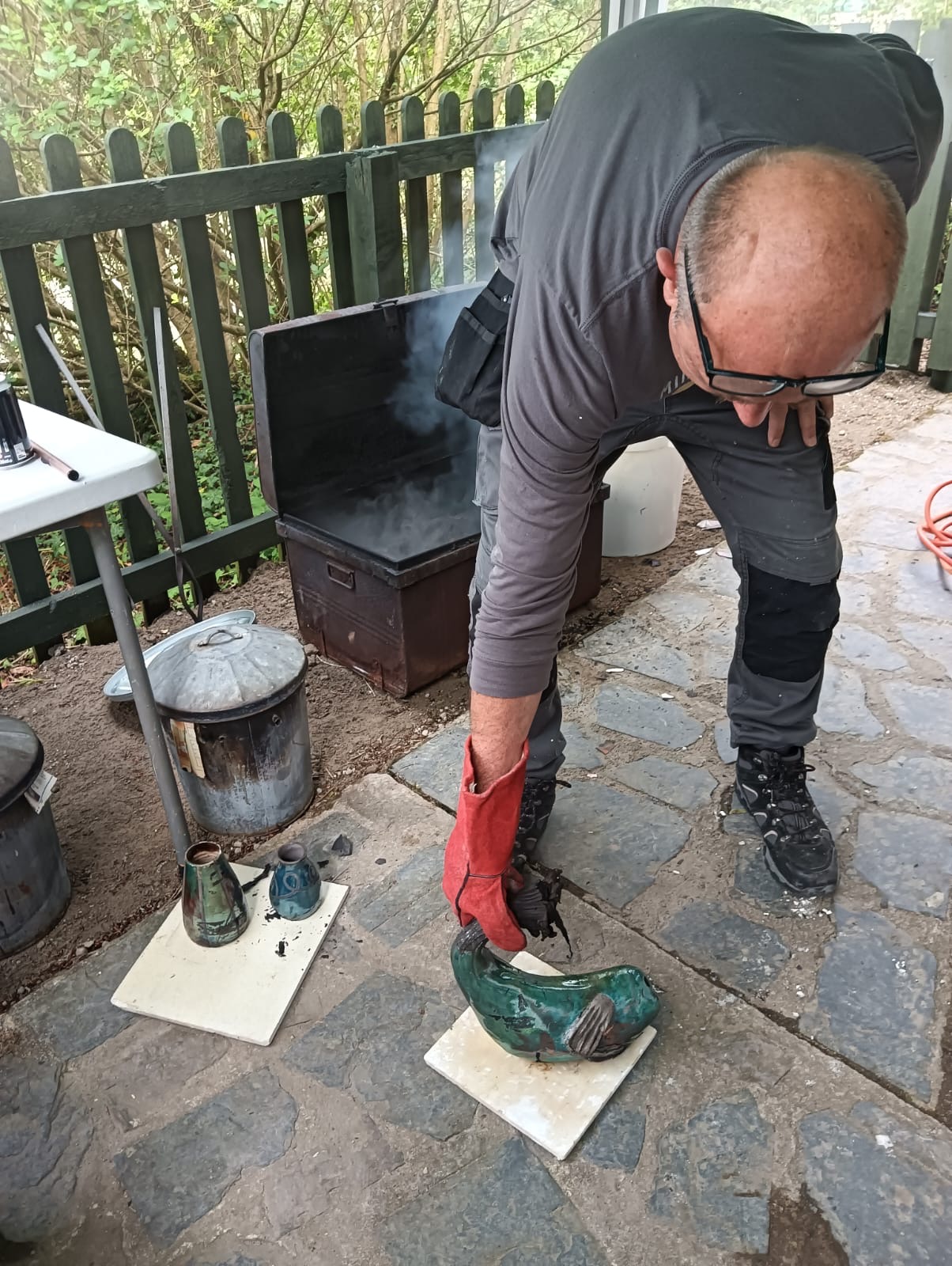Having now relocated to our new studio just outside St Clears, we were ready to test the new facilities and a big thanks to Jaclyn and Jan (Fellow South Wales Potters members) who wanted to come and have a play. Jaclyn had never done Raku firing on her wonderful seals she makes, so she bought along a few to fire. They all survived the firing process, and we had some wonderful results. Needless to say, she wants to come back and do some more. Jan who you might recognise from the 2024 Great Pottery Thrown Down, had done some Raku on the programme but wanted to learn more. We had some great results and Jan is now thinking of getting her own Raku kiln for making some stunning turtles.