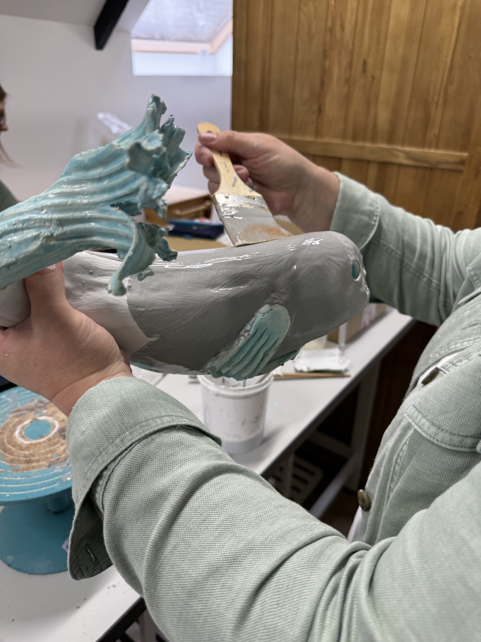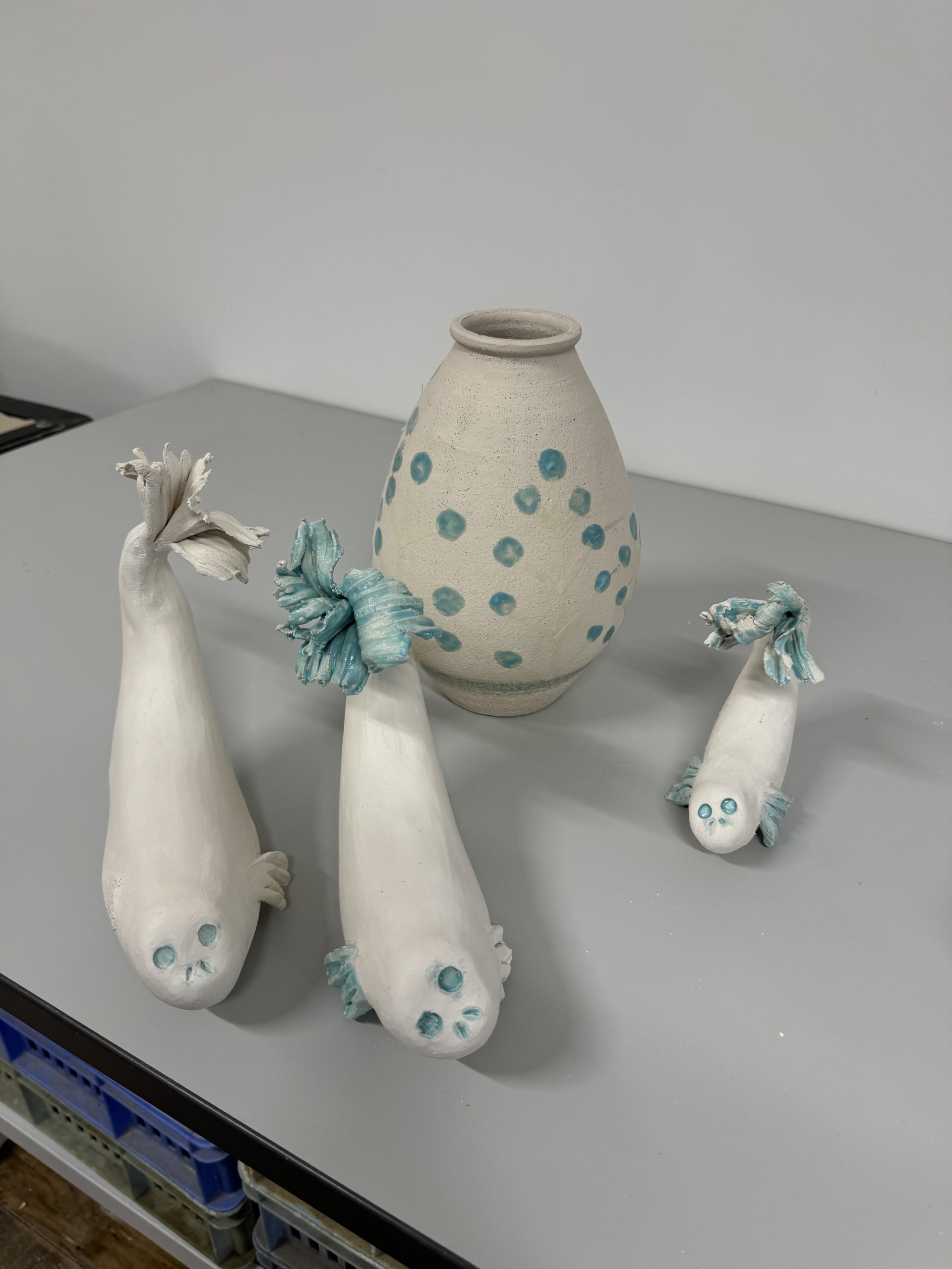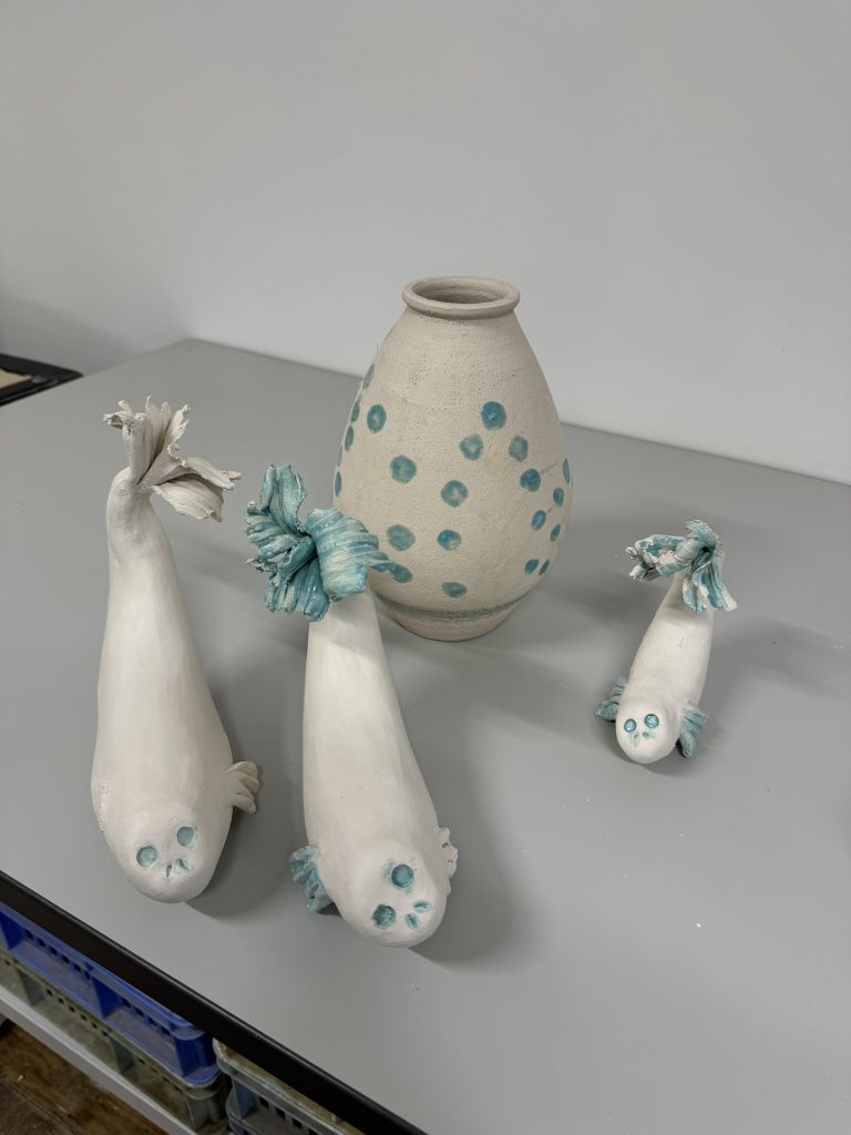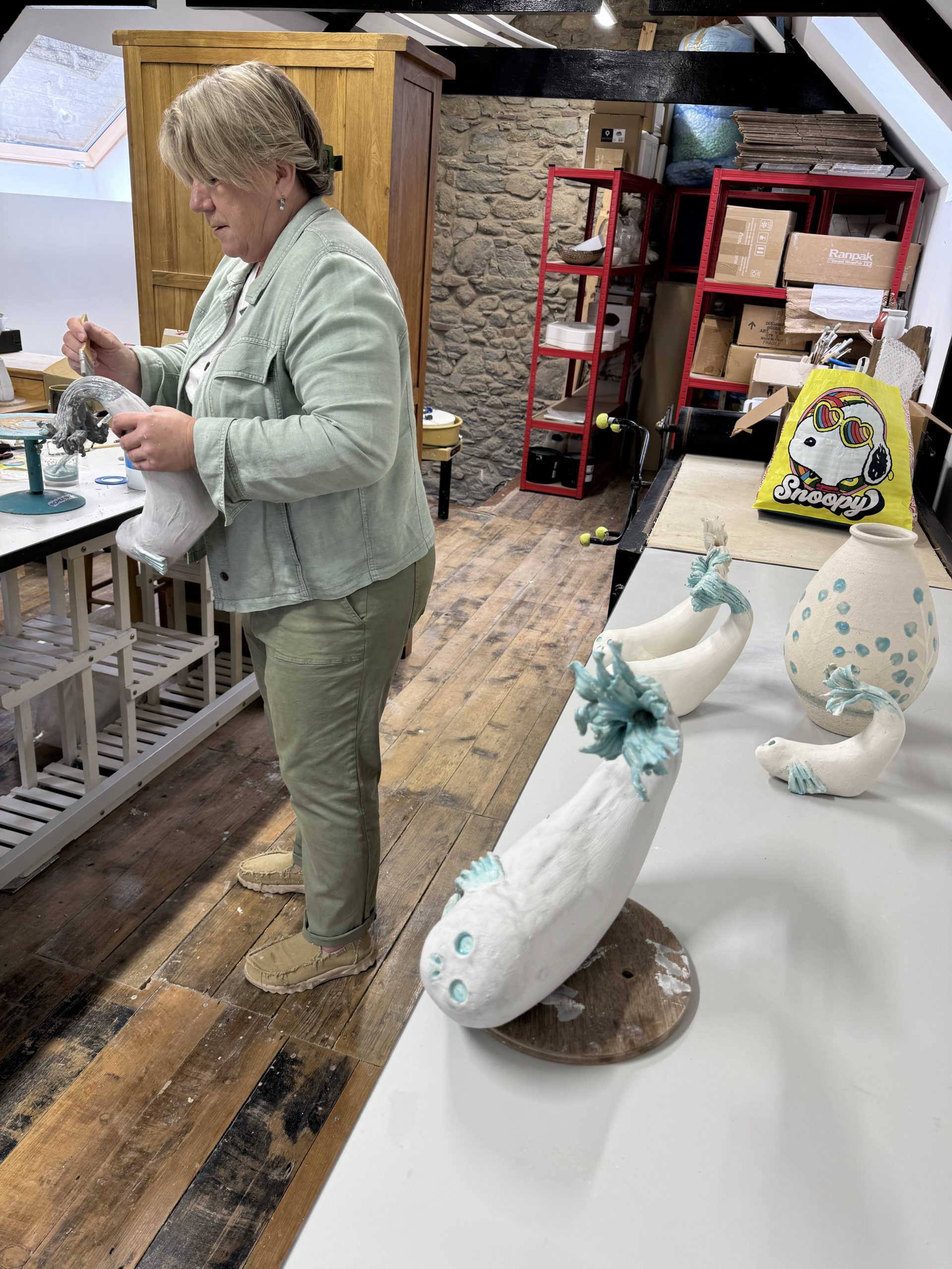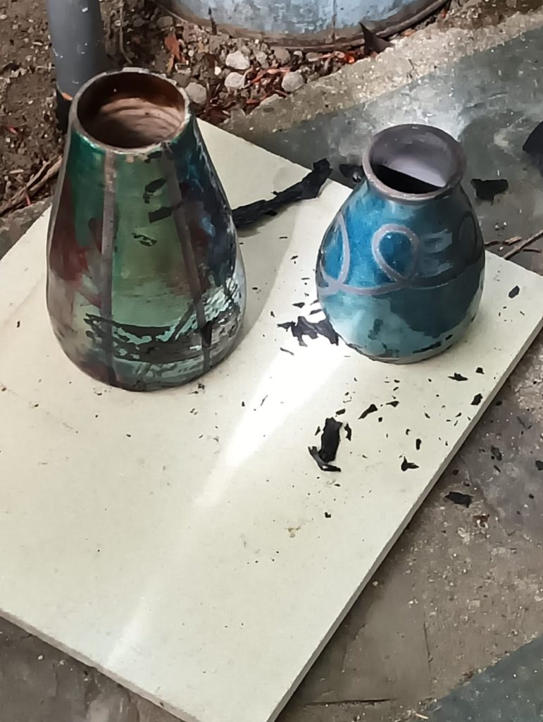 Having now relocated to our new studio just outside St Clears, we were ready to test the new facilities and a big thanks to Jaclyn and Jan (Fellow South Wales Potters members) who wanted to come and have a play. Jaclyn had never done Raku firing on her wonderful seals she makes, so she bought along a few to fire. They all survived the firing process, and we had some wonderful results. Needless to say, she wants to come back and do some more. Jan who you might recognise from the 2024 Great Pottery Thrown Down, had done some Raku on the programme but wanted to learn more. We had some great results and Jan is now thinking of getting her own Raku kiln for making some stunning turtles.