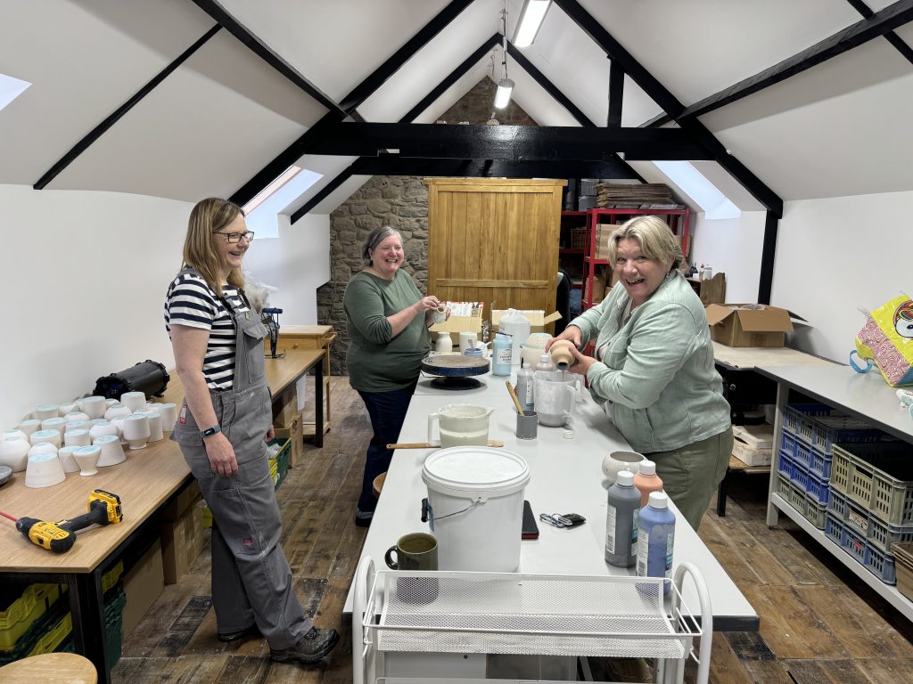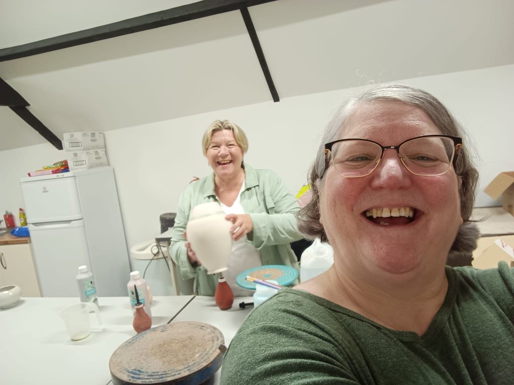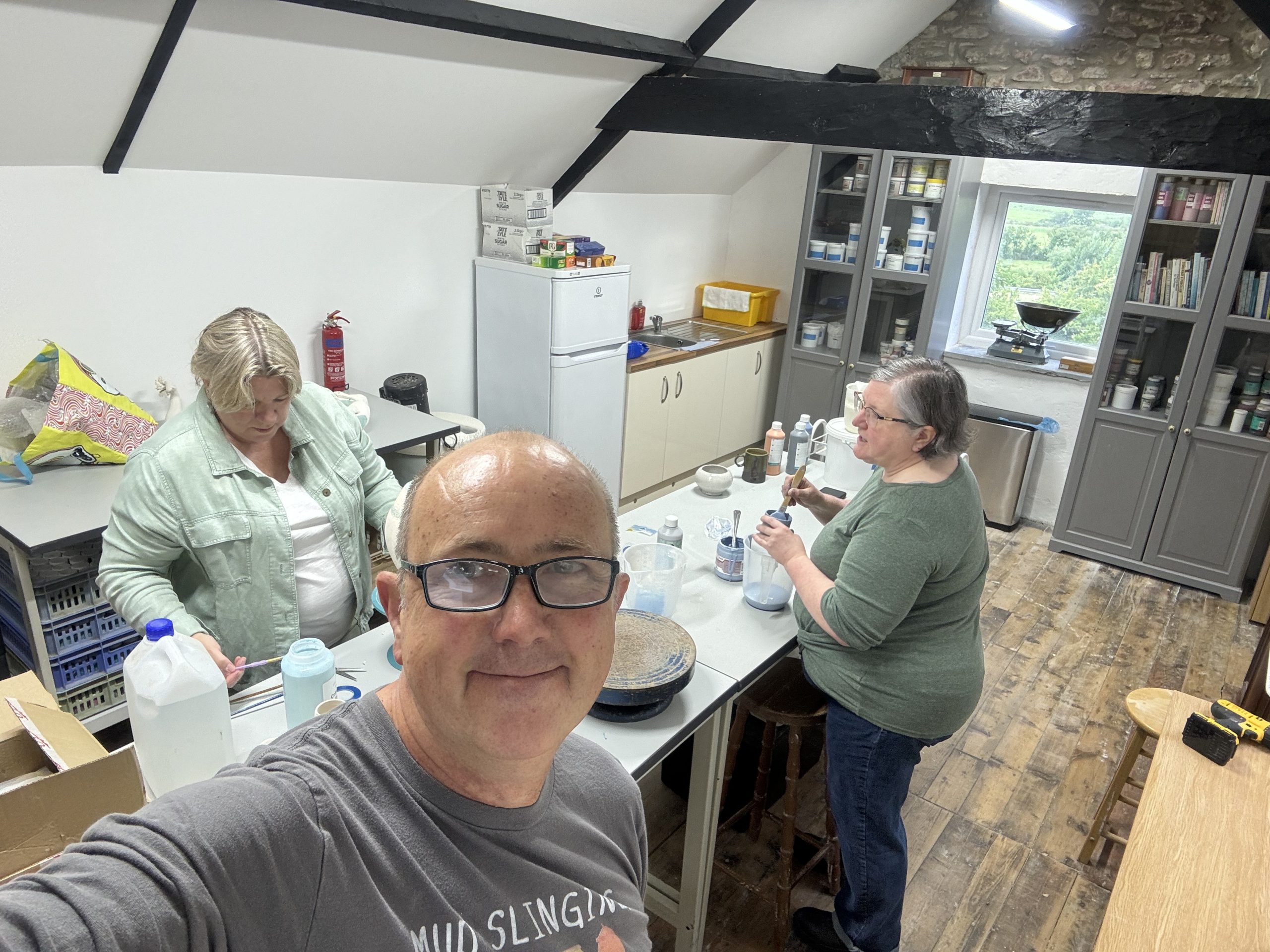 On the whole things went smoothly with the glazing / preparation area and the sheltered outdoor firing area was spot on. We were all so happy we forgot to get Jan and Jacklyn to sign the visitors book, so they will have to come back.