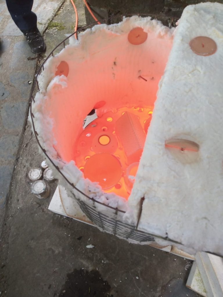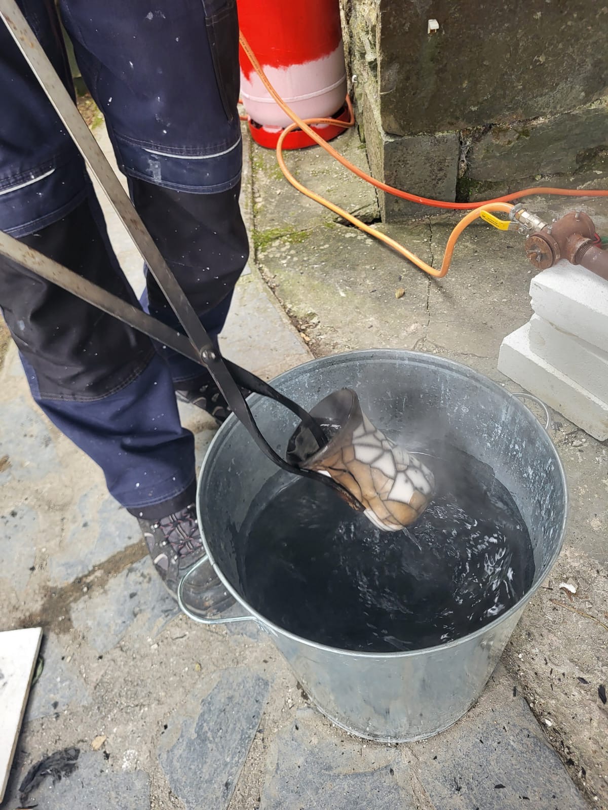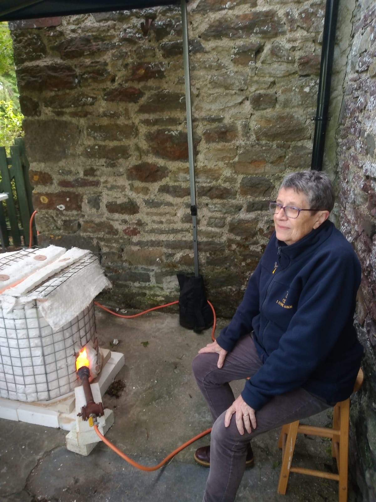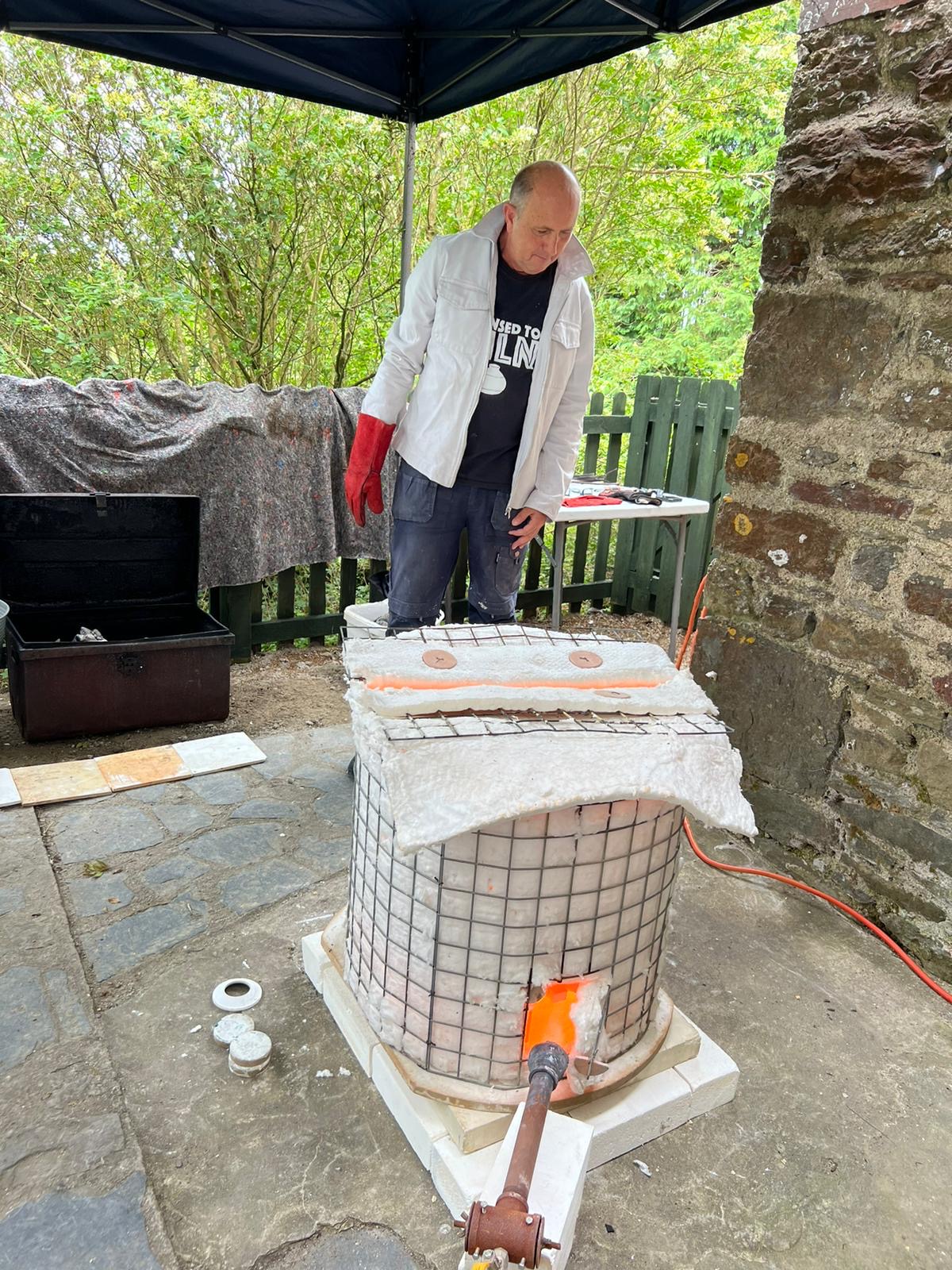 We woke up to a mist covering the valley, a good sign that they weather should be just right for an outdoor Raku firing session with a new group of students. With everyone arriving on time and a quick cuppa, we started off with the usual safety briefing and history of Raku talk. Adrian spoke about the different types of Raku decorating we do and the difference between slower firing of general ceramics pots and the faster Raku firing. We then bought out lots of examples of Raku pots and creations and explained how we achieved the effect on each one. There were lots of questions as usual with the students getting their heads around areas which have no glaze turning black from the smoke and the glaze popping off when doing the naked Raku technique.