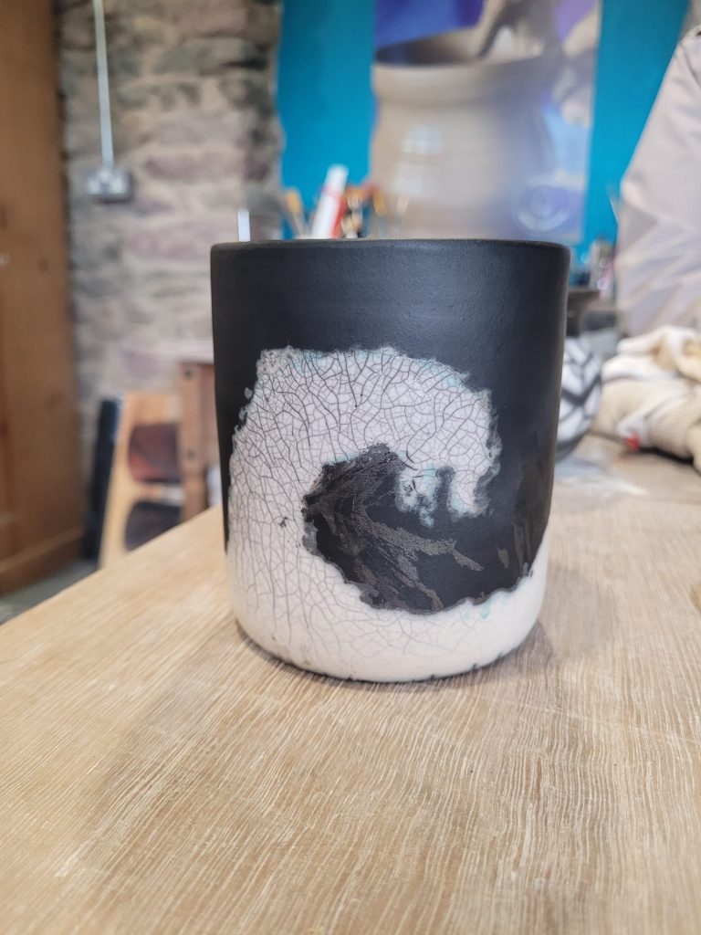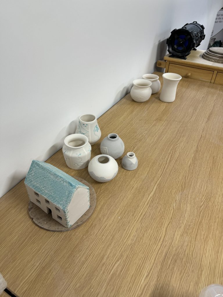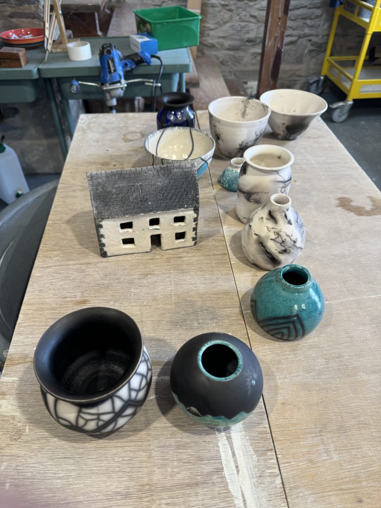 Although this was a taster session and all the students were able to choose 2 bisqued pots from a selection, we also had Bethan bring some of her own creations and her dad who created a little pottery house. Generally, our Raku workshops are where students bring their own creations and are different from the taster session, however we needed to accommodate Bethan as we had no other dates for her to attend a workshop.