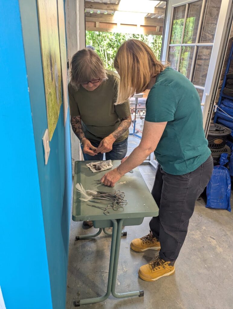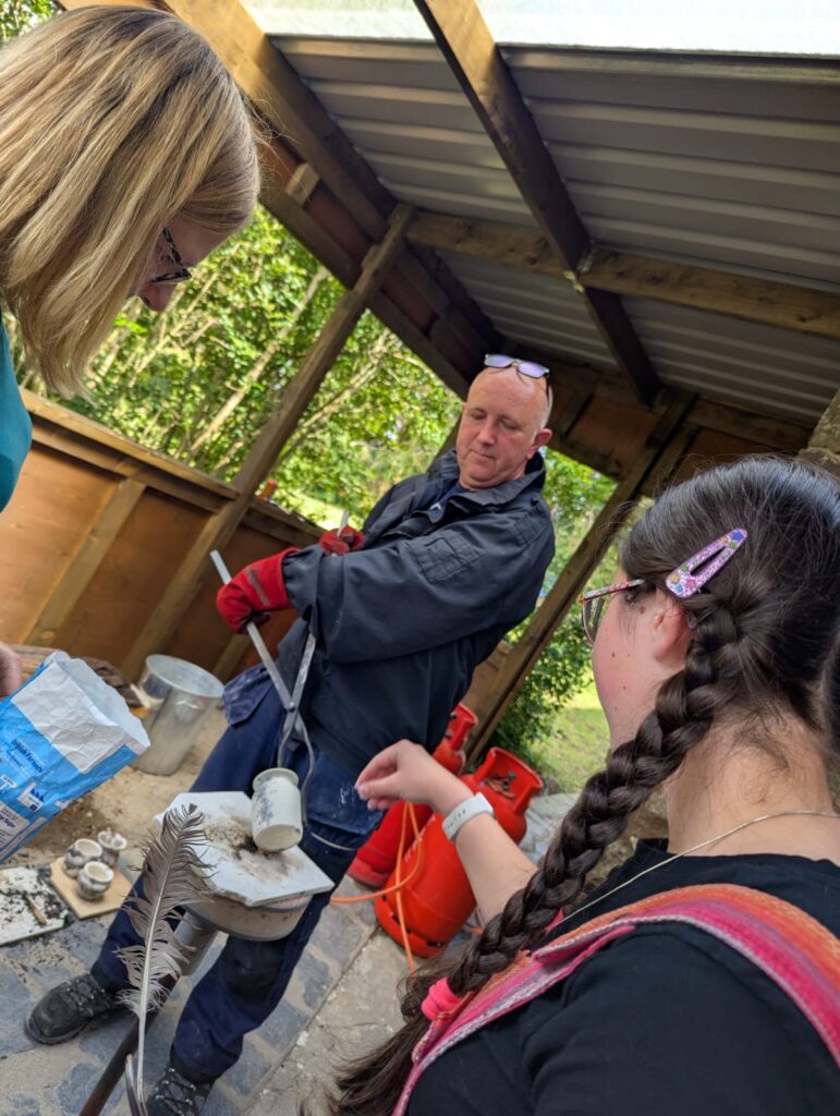Karen helped the students with their decorating whilst Adrian set up the kiln and all the firing equipment. We did not waste any time in getting the kiln going as we knew we would be doing a few more firings than usual. All the students chose to do a horse hair / feather firing with the RakuMania pots they got from us. This technique is great as the student “decorate” the pots whilst still at about 700 Celsius.