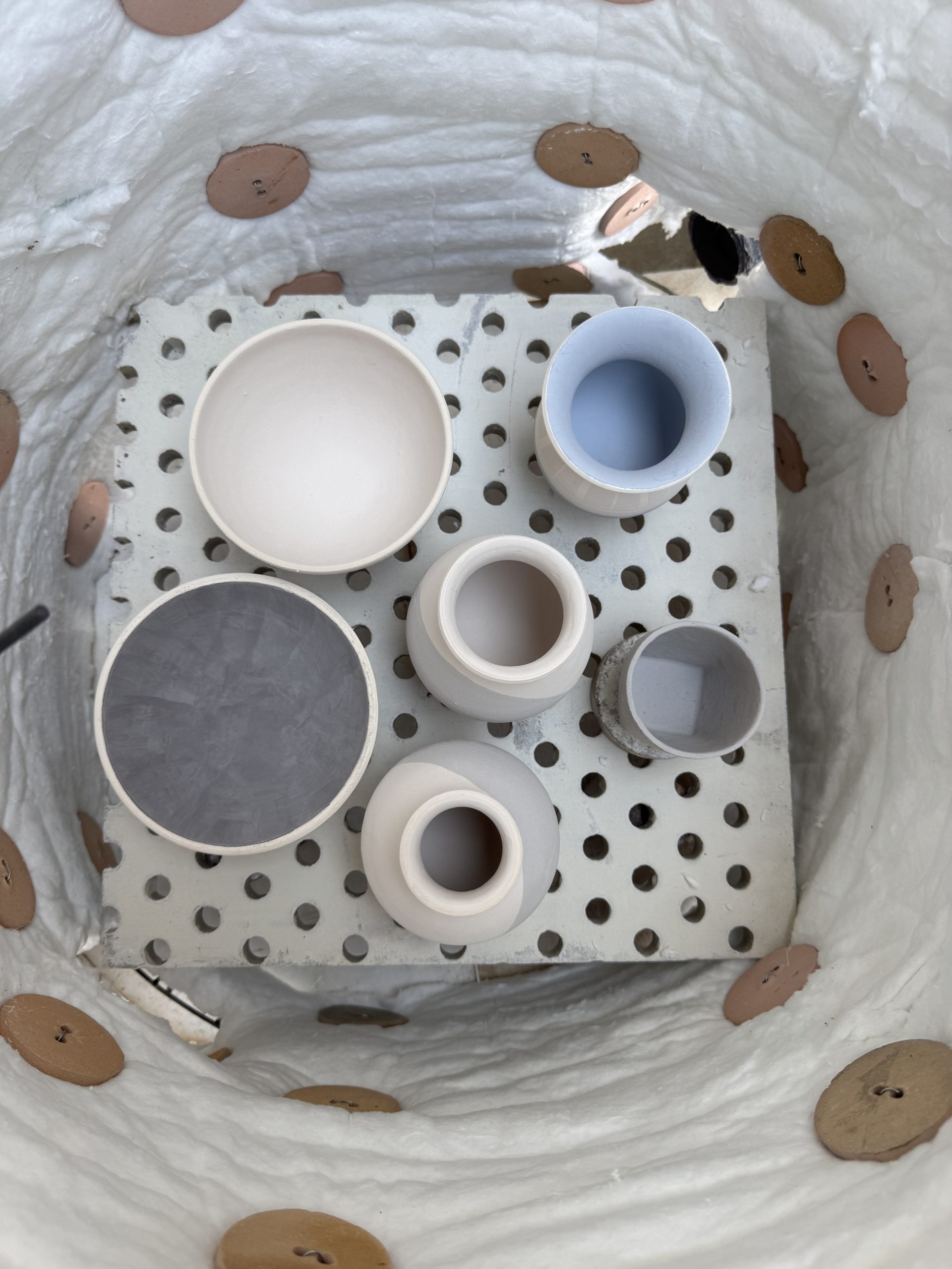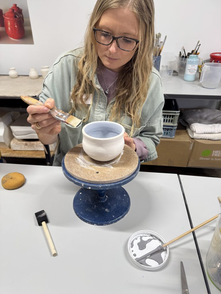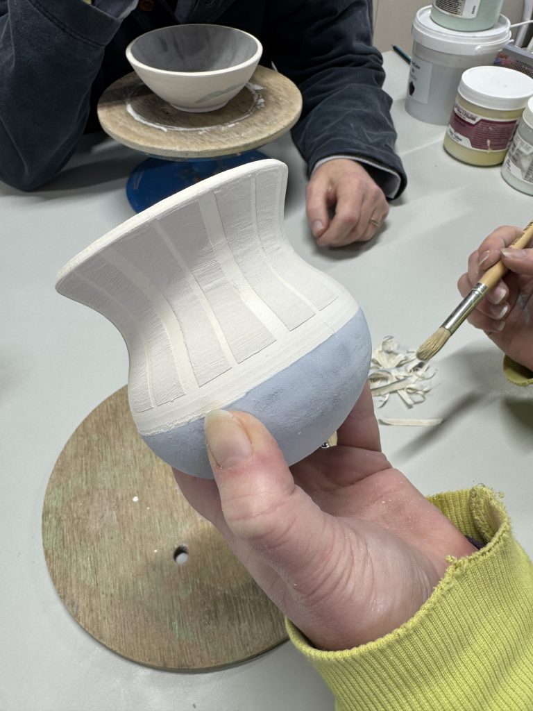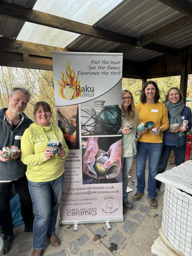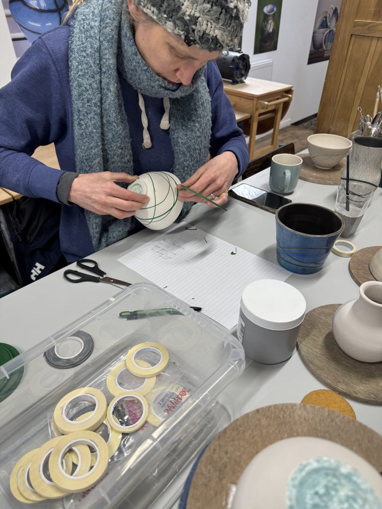 The new 2025 season started today with a new group of eager students. We broke a record today for the students that have travelled the furthest to enjoy a day with us – one from Portsmouth and another from Cornwall. The kettle was on, and we all enjoyed a cuppa whilst running through some formalities. Adrian had updated his talk on the history of Raku which always goes down well, and Karen showed off several Raku styles we do here in the studio. The students all chose two bisqued pots from the selection and a few decided to go for a third pot, at a small extra charge. Everyone got decorating / glazing their pots with some simple but interesting designs. There were lots of questions and Karen & Adrian were on hand to advise what works best and what to avoid.