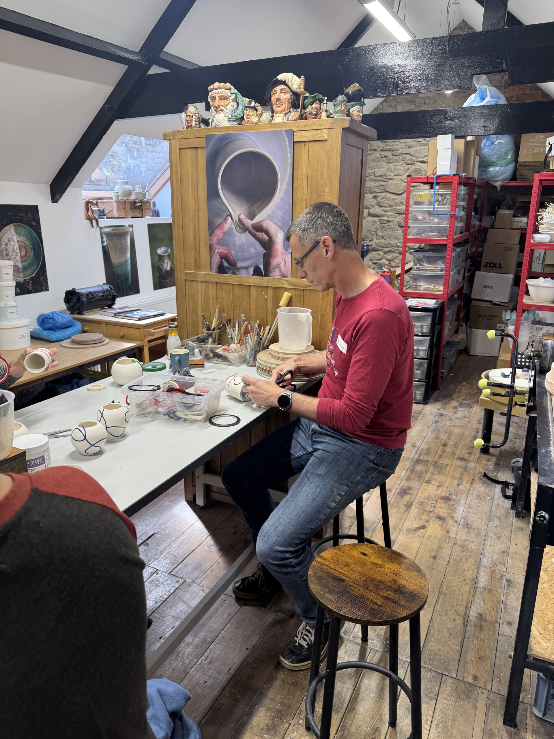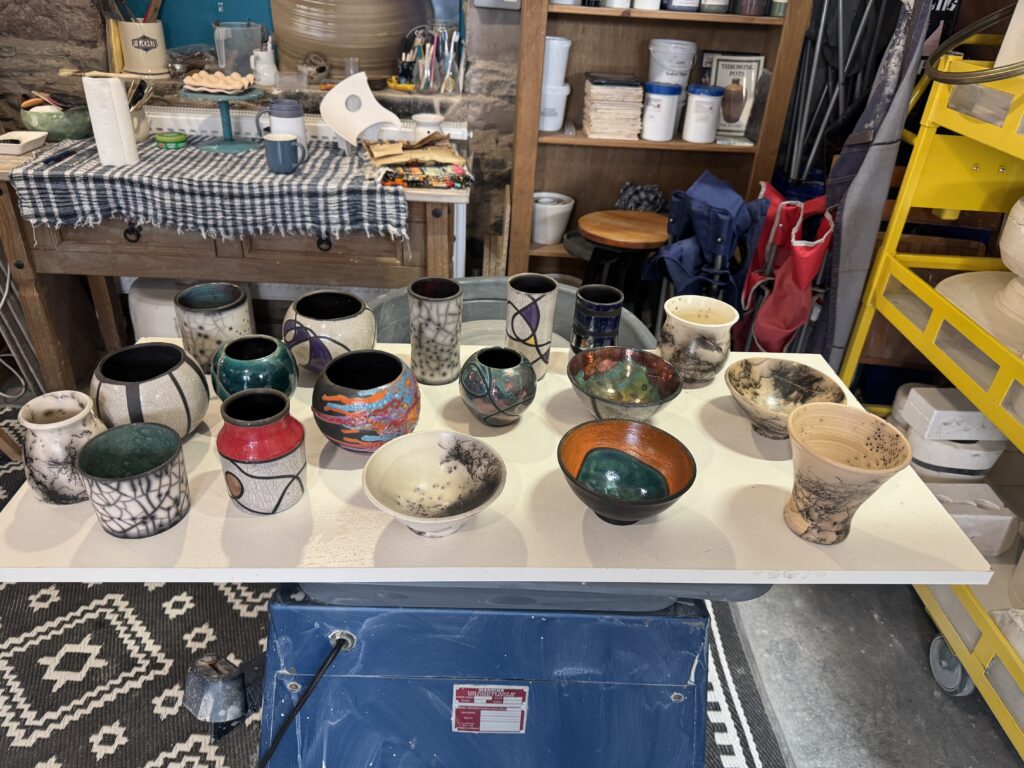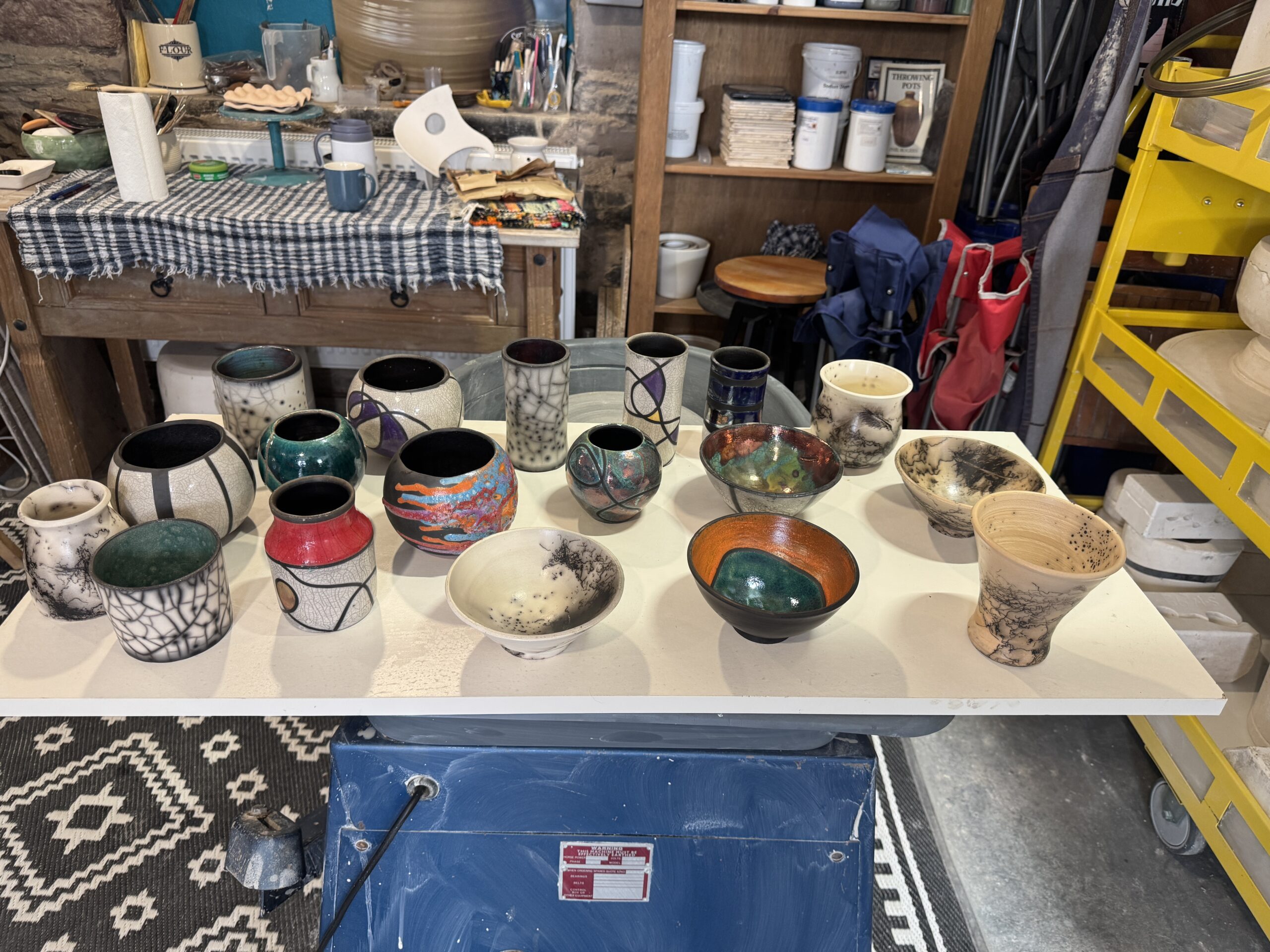Its Friday morning and a great day for a new group of RakuMania students. In this group we had some friends of a very good friend of mine, so it was great to meet them. This part of Wales is lovely, so a fantastic weekend for those waiting to get out of the hustle and bustle of London and surrounding areas. With the morning beverage and introductions out the way, Adrian did his usual talk about the history of pottery and more specifically that of Raku and how it ended up in the UK.