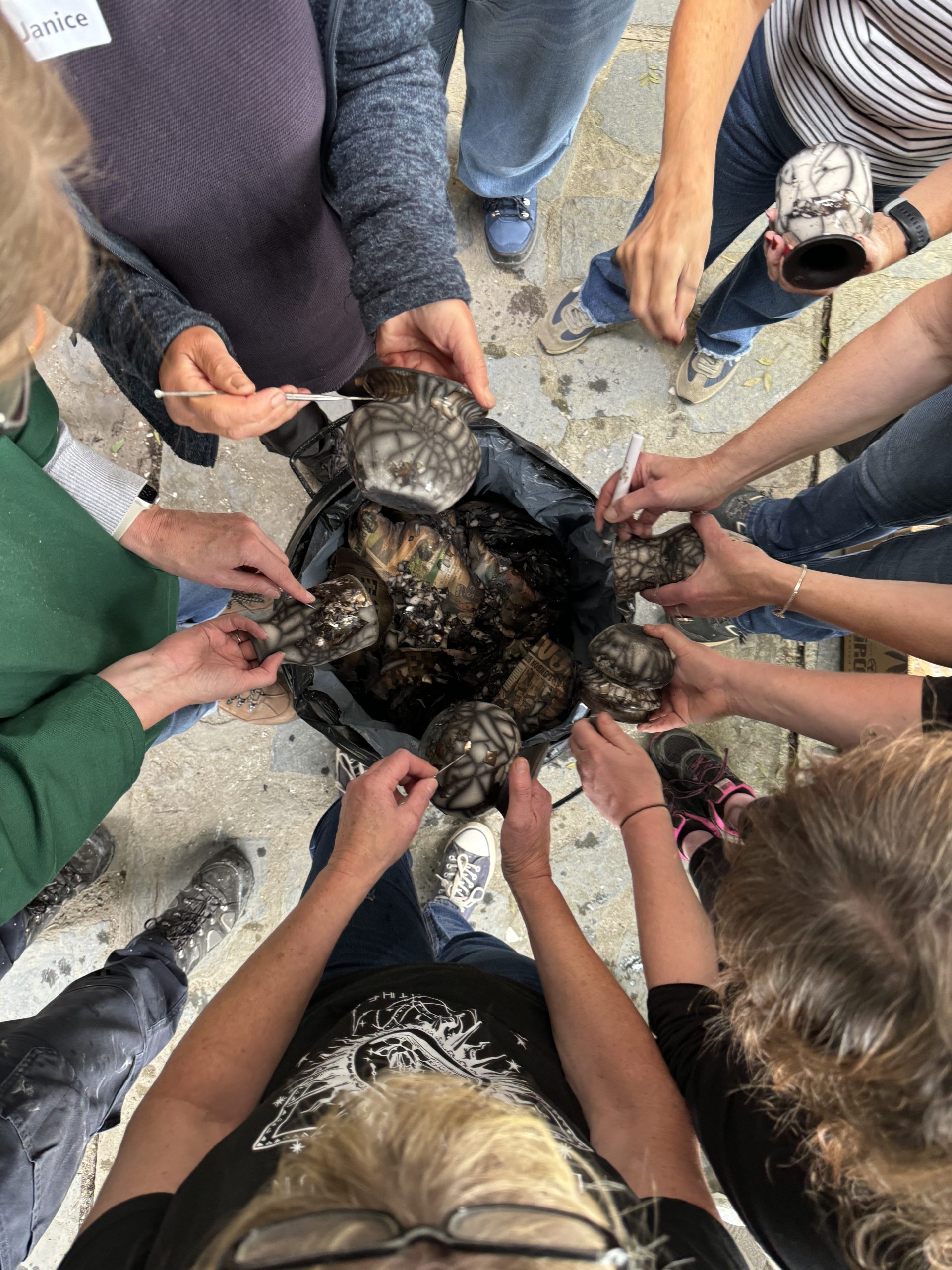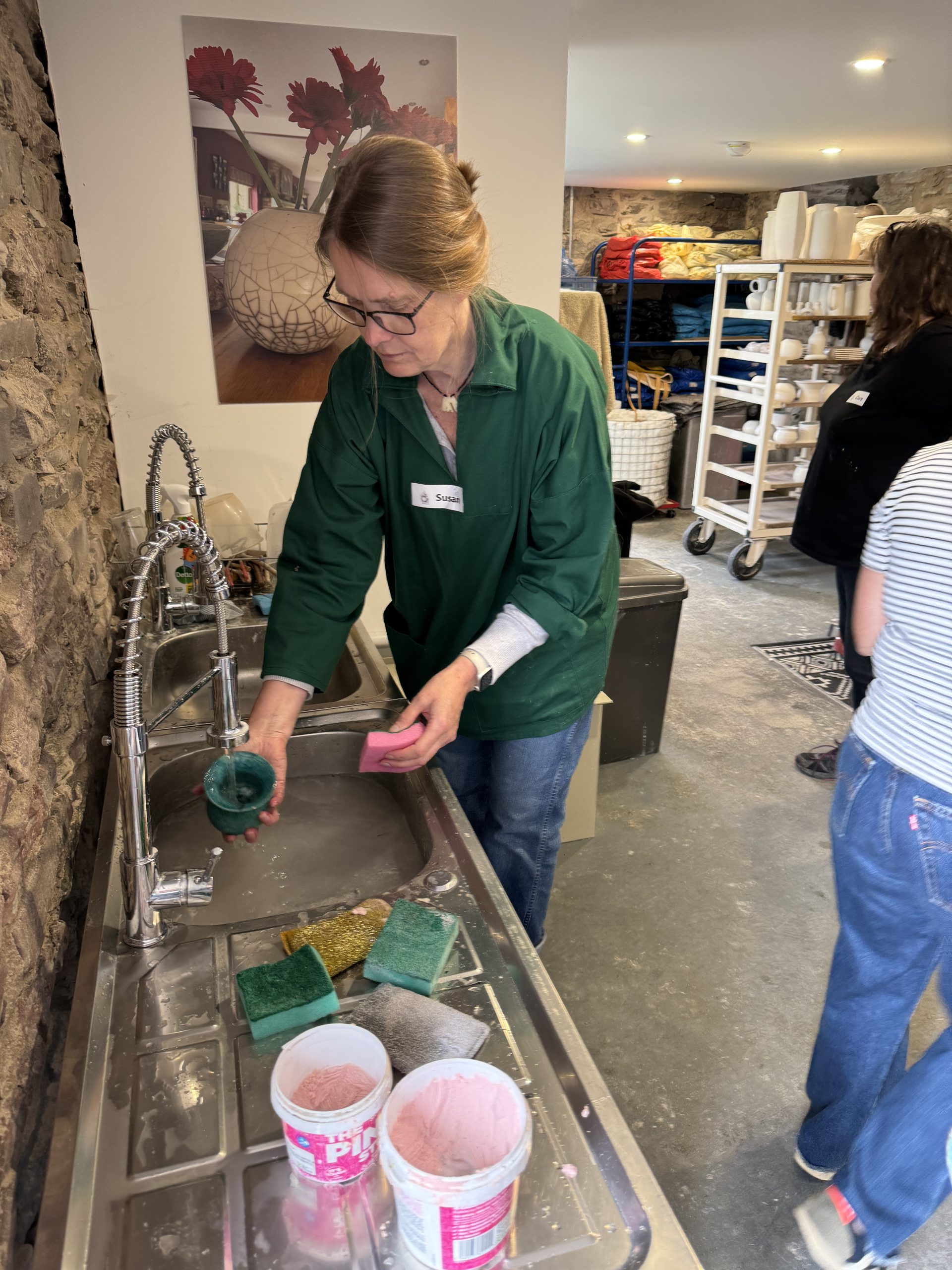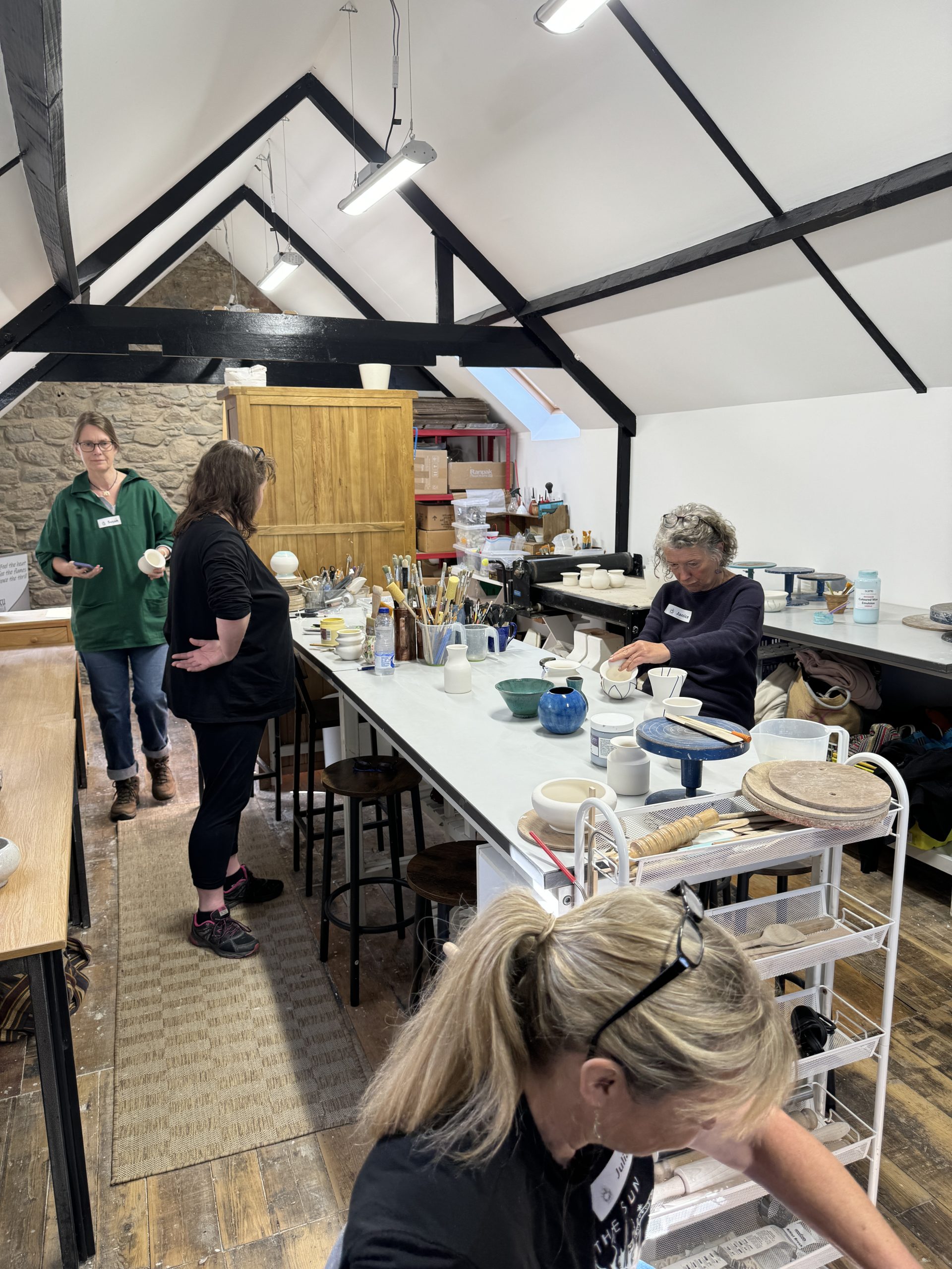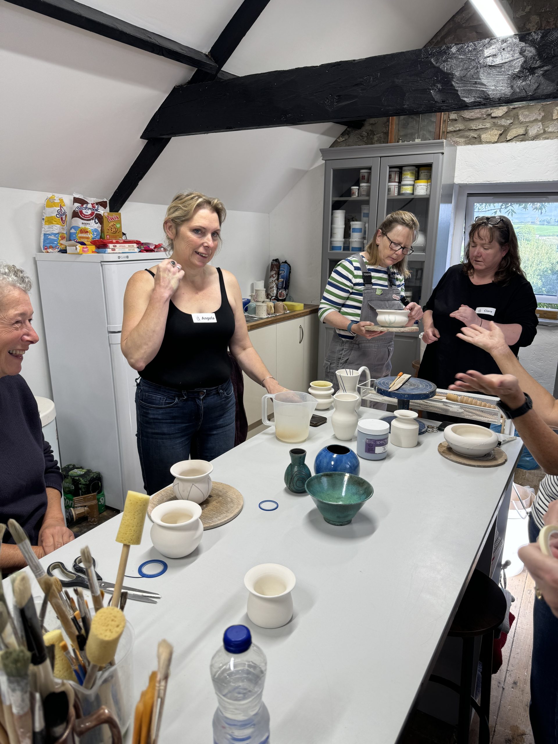 The sun was shining, gazebo all set up with the kiln, kettle on and now we just need some students. Today, Angela who is already a RakuManiac and a pottery teacher herself, was bringing 6 of her students for the Raku experience. Great excitement as everyone arrived and had a brew to start the day off. Here at RakuMania we have a stocked fridge and lots of snacks for our students to help themselves to during the day.