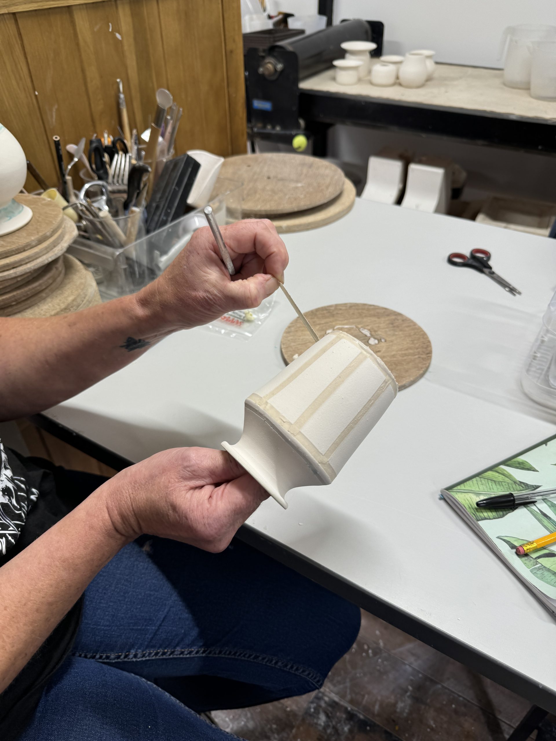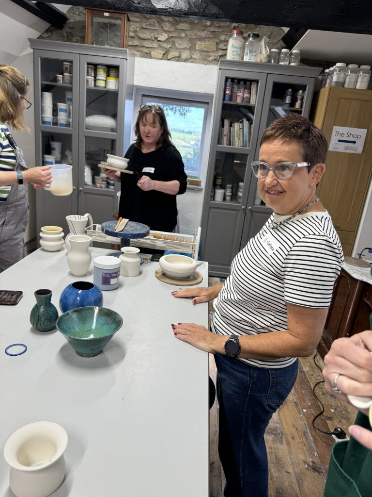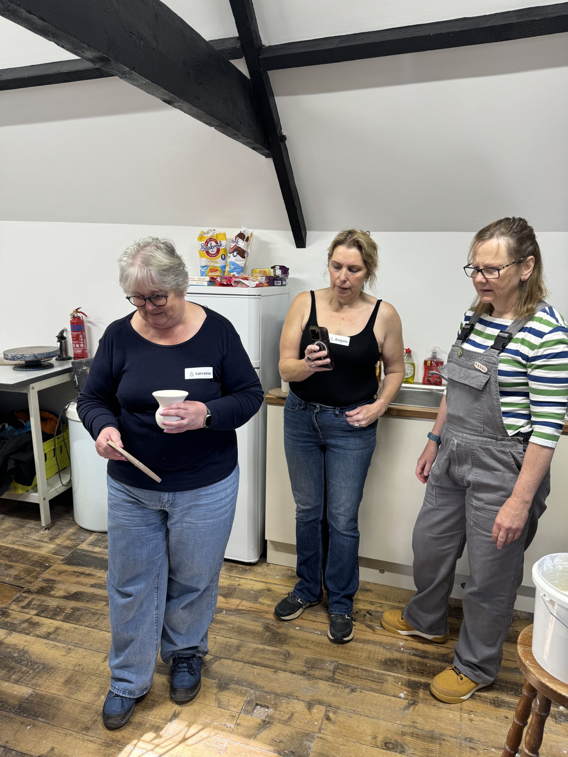 After the obligatory introductory and safety talk, Adrian gave the class a brief history of Raku and how it ended up in the UK. Karen then showed the class a number of pots had been made by the RakuMania team to give them some ideas of how they might like to decorate their pots. With the taster experience, each student gets to choose two bisqued pots from selection we have and the option to purchase more at a nominal fee. The Raku Workshops we run are different in that students bring pots they have made themselves.