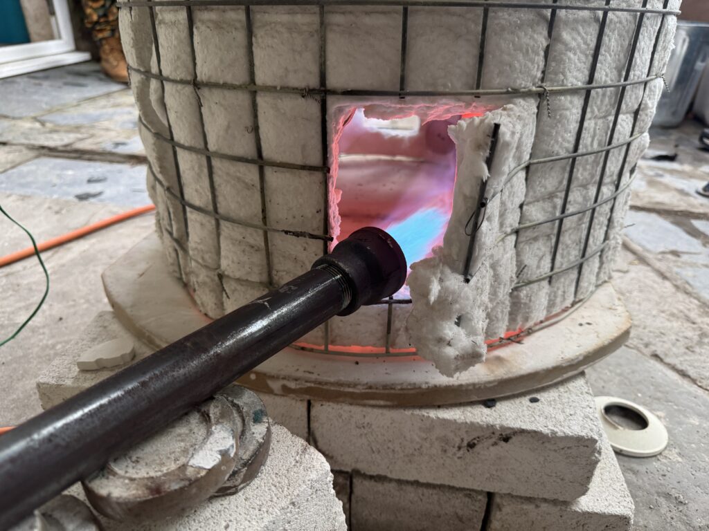 Not the best day for a Raku session with the rain having pelted down for a number of days and the fields opposite the pottery under water (as well as a couple of houses in the village). It is days like this when we are glad that we invested in the new Raku shack instead of all holding the legs of a gazebo about to take off. Oddly enough, it was not cold but we gave the inside heating a quick boost before the students arrived.