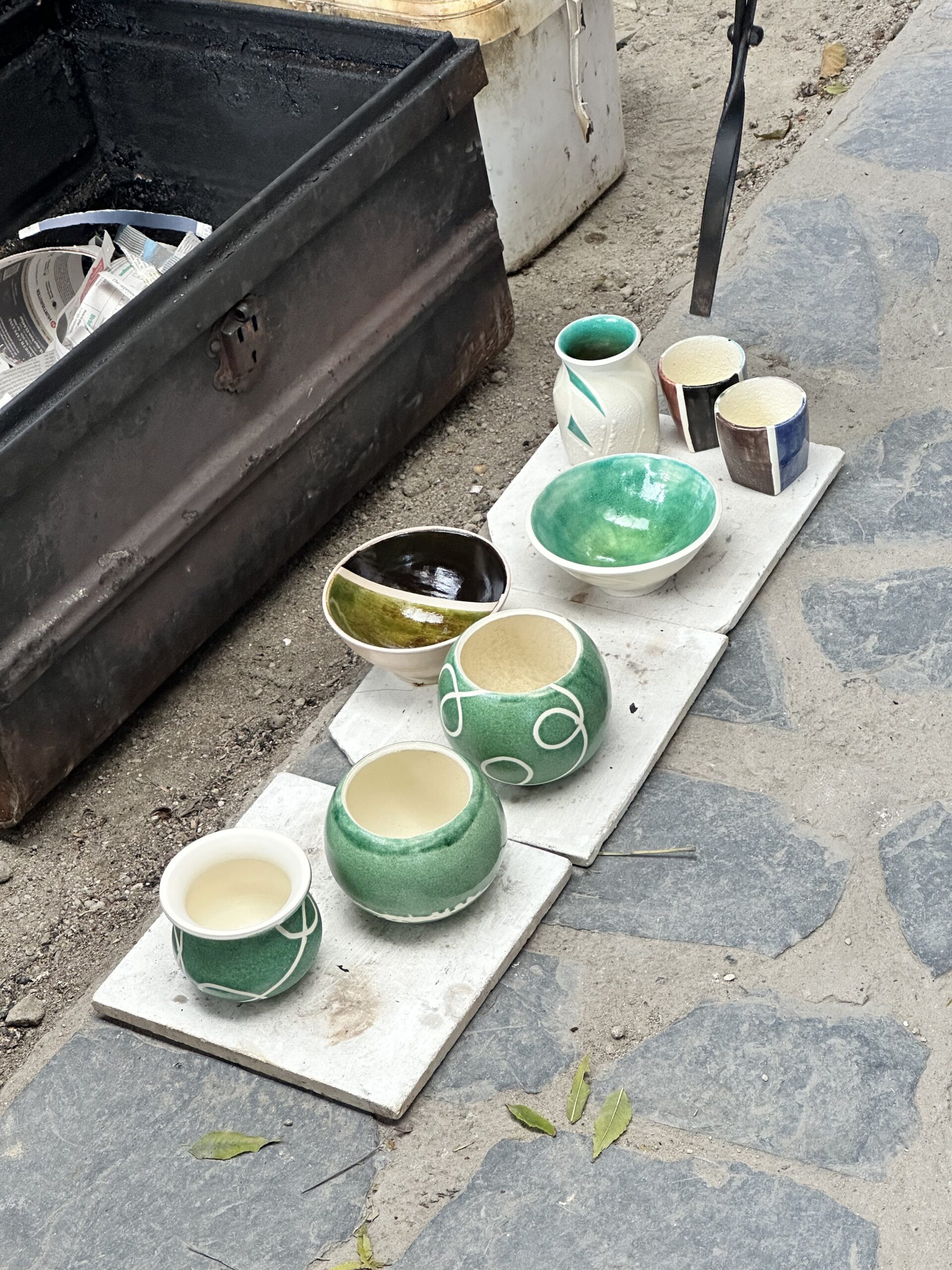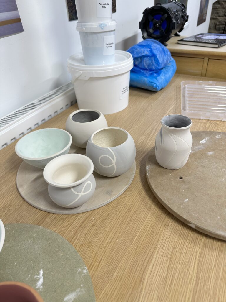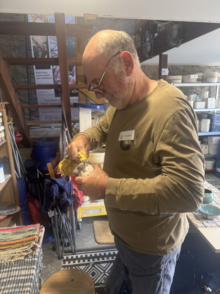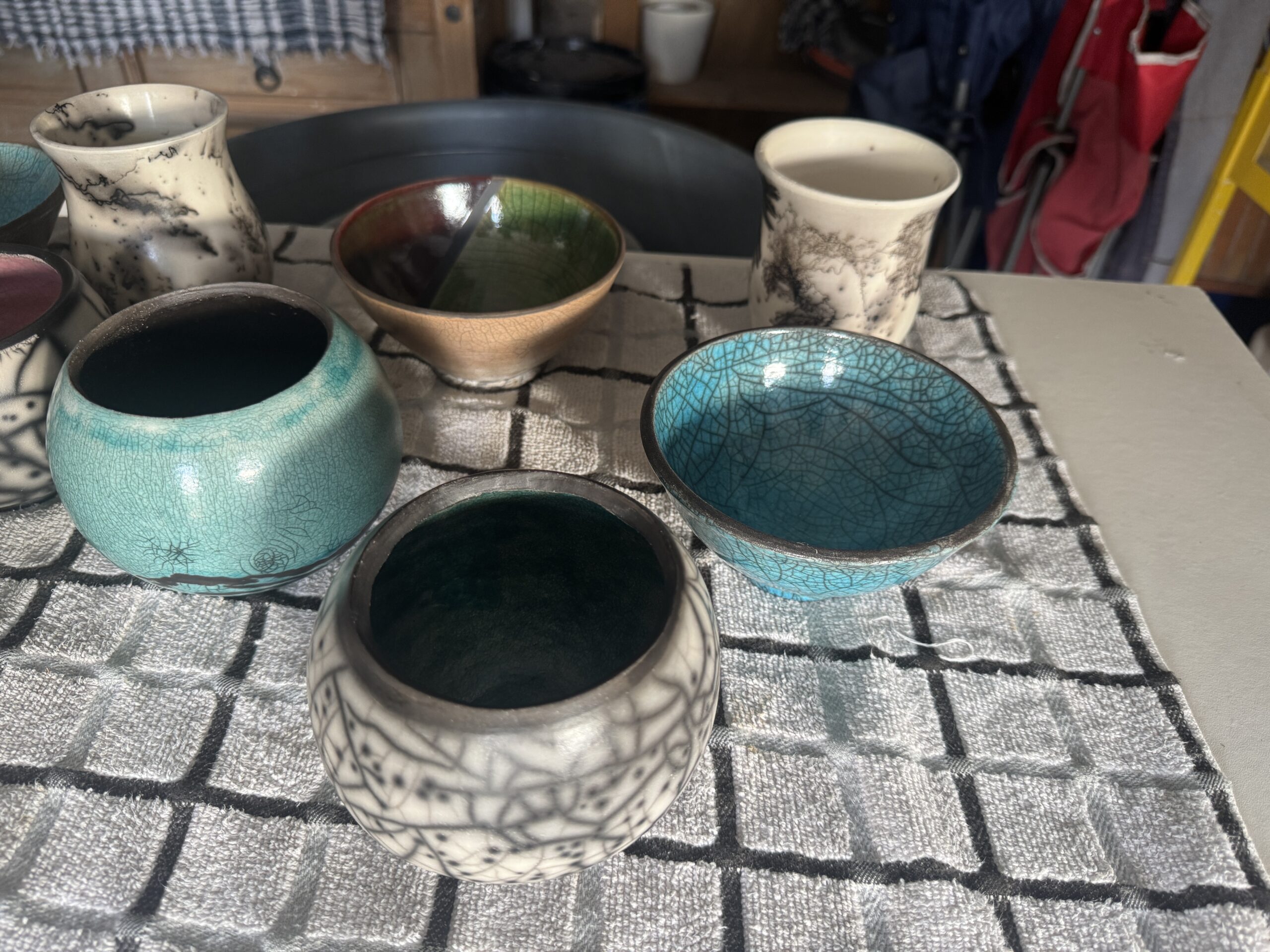 Adrian did his customary talk about pottery and types of clay. This was followed by a brief history of Raku and how it got to the UK. We chatted about the fact that Raku ware is not any good for functional use as the clay does not vitrify and the glaze when used is crazed (crackled) which can trap harmful bacteria. Bowls are great for biscuits, sweets etc but just not soup, porridge, or other wet food stuff.
