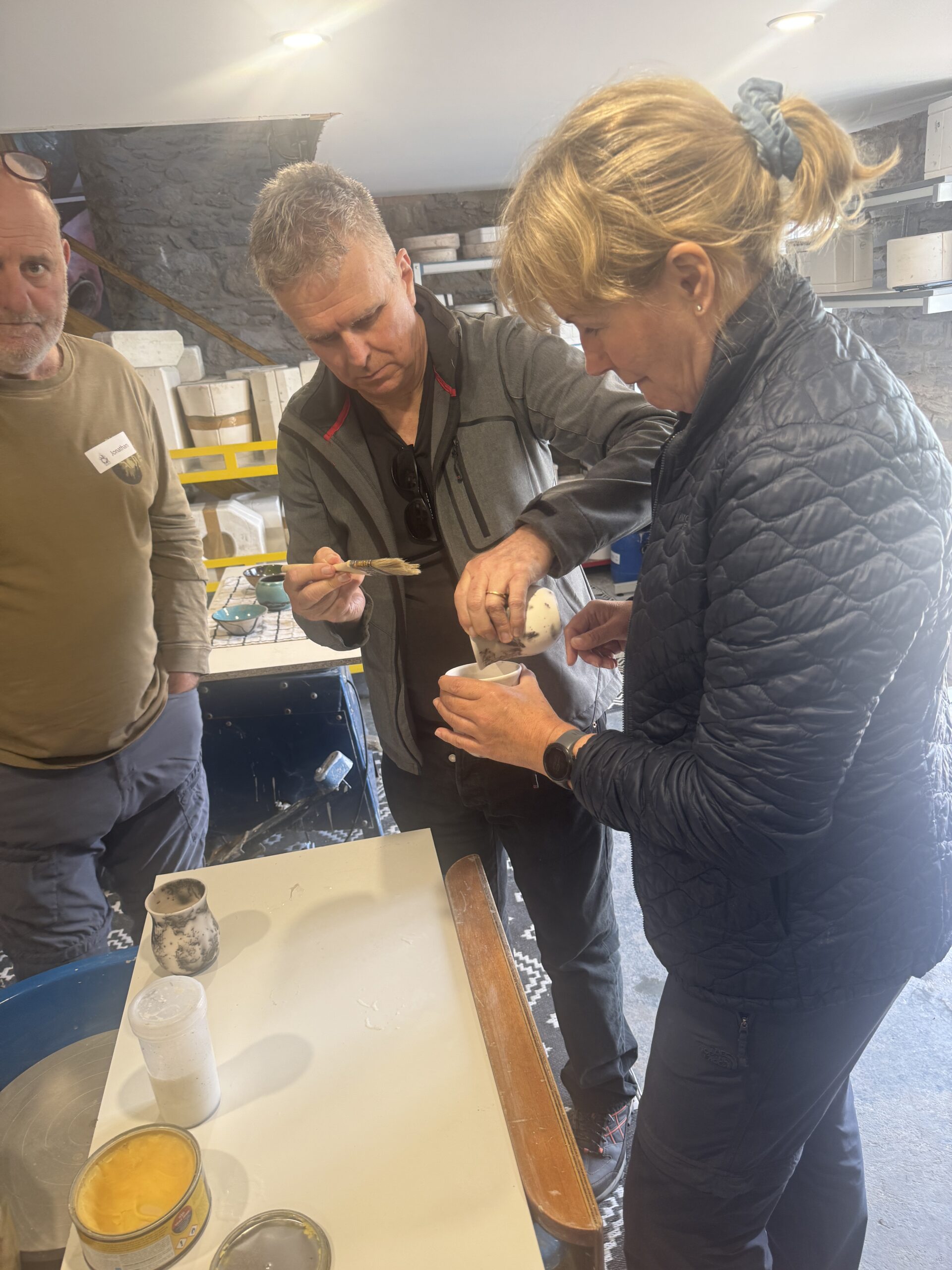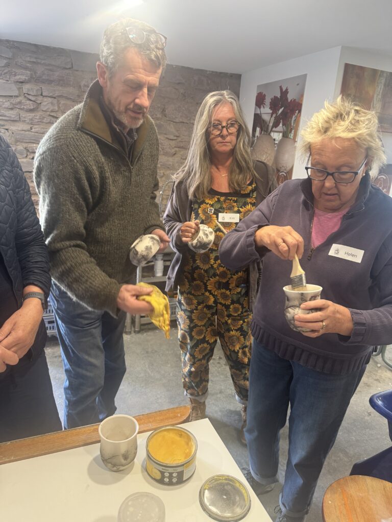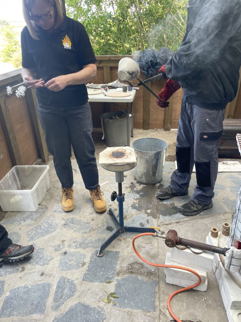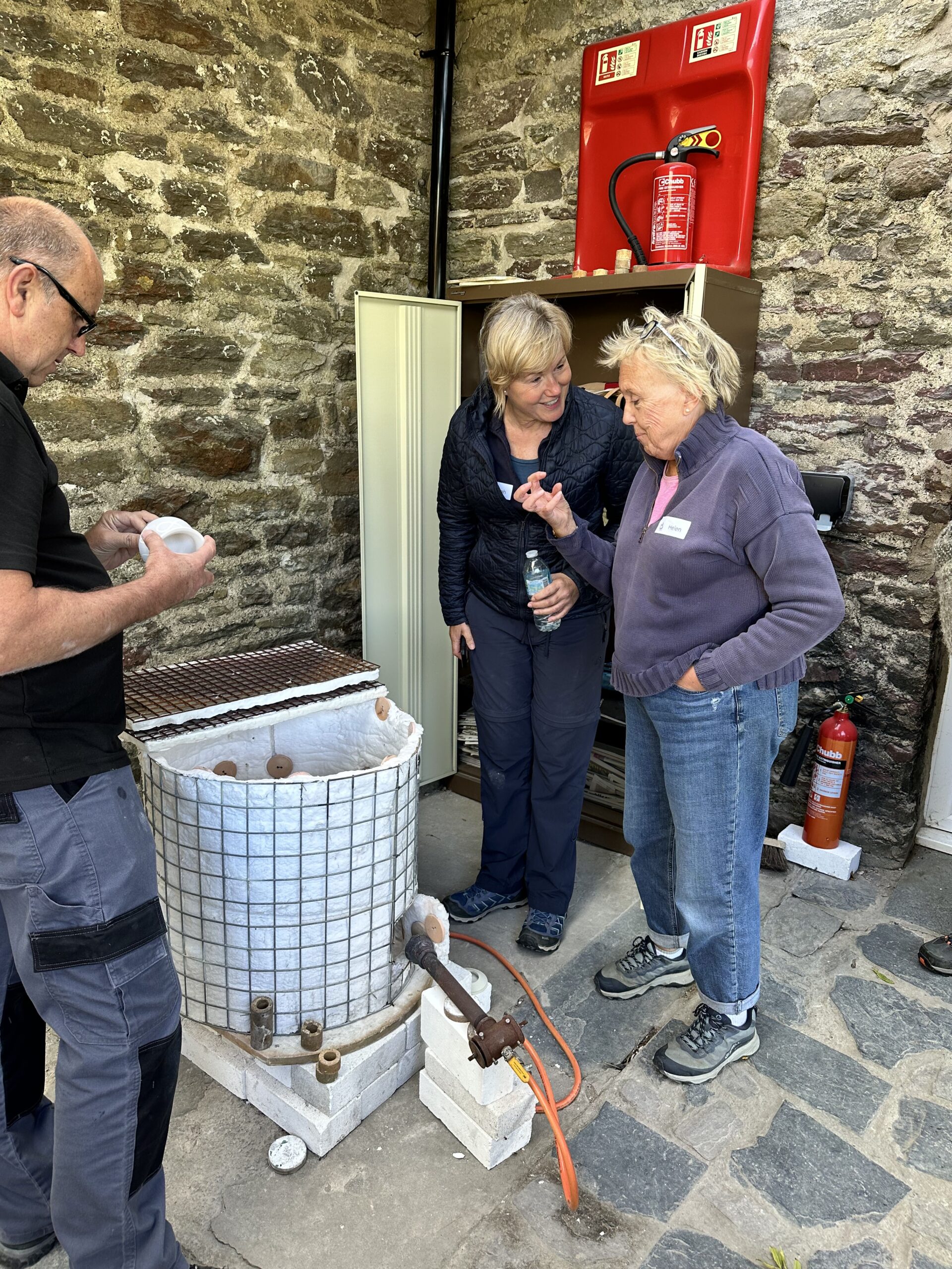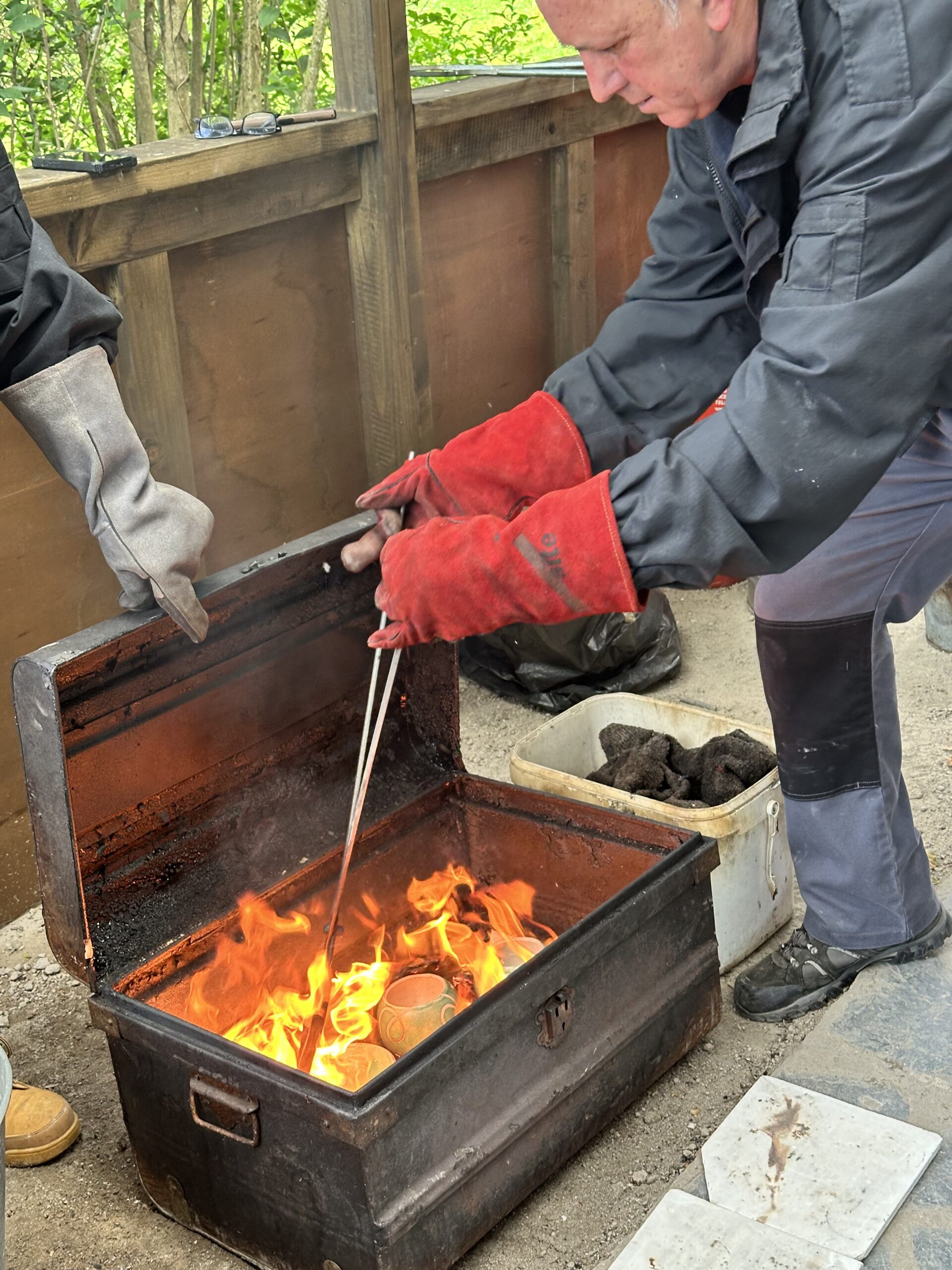 Everyone arrived a little early (must been keen 😊), so Adrian did the tea round before starting the instructions. We print off name badges for everyone, so no embarrassment about forgetting someone’s name when they get too close to the kiln!! It’s great to hear where everyone has come from and their background (if any) to pottery. The great thing about our Raku Taster Day is that you don’t need any pottery experience and you don’t have to be artistic – Adrian is not hehehehe.