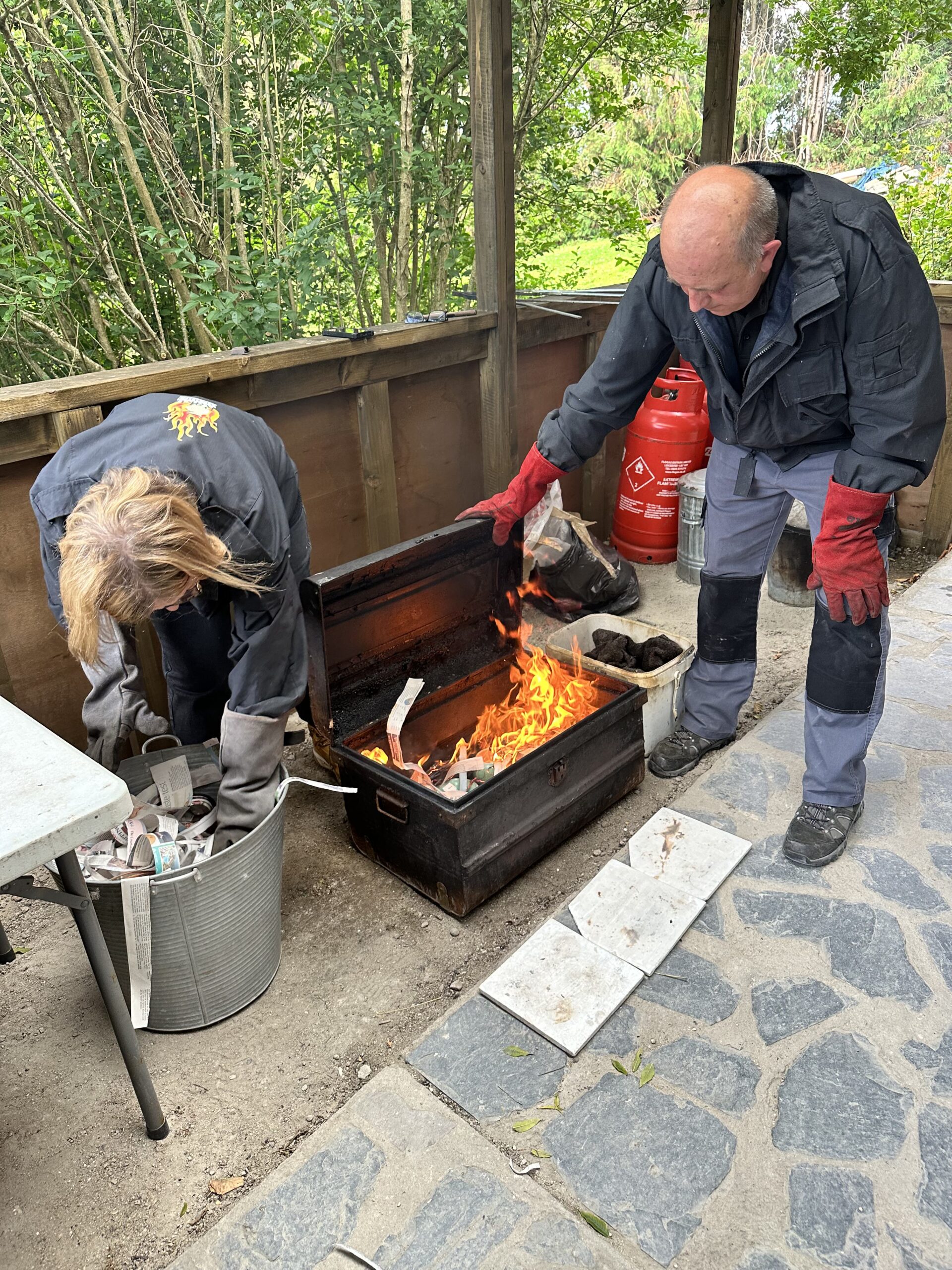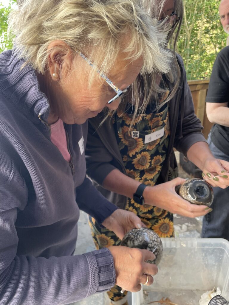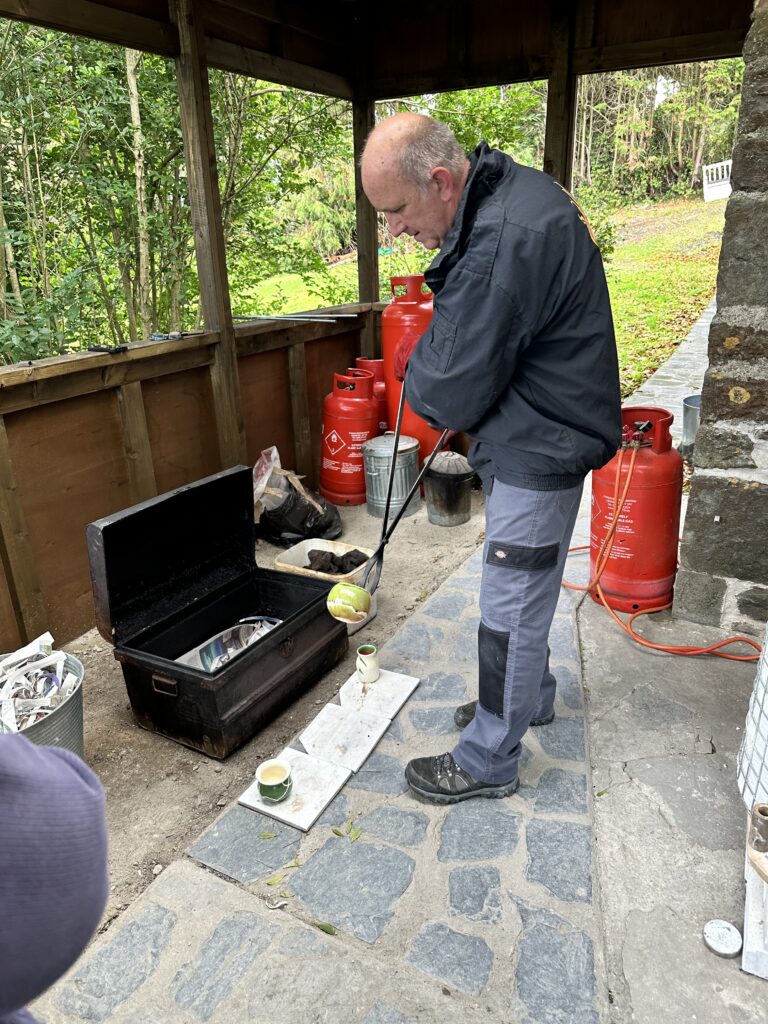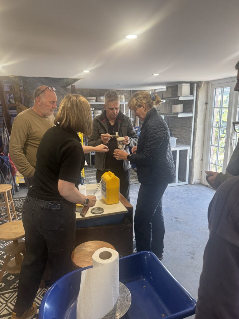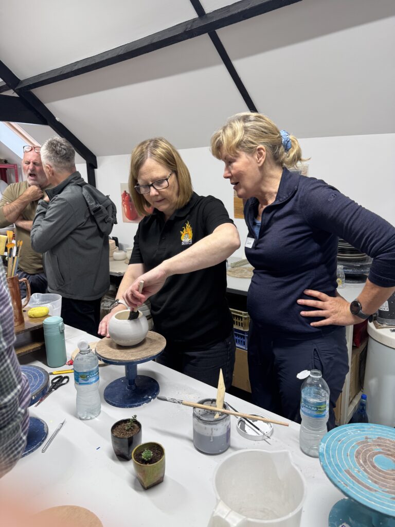 Everyone arrived a little early (must been keen 😊), so Adrian did the tea round before starting the instructions. We print off name badges for everyone, so no embarrassment about forgetting someone’s name when they get too close to the kiln!! It’s great to hear where everyone has come from and their background (if any) to pottery. The great thing about our Raku Taster Day is that you don’t need any pottery experience and you don’t have to be artistic – Adrian is not hehehehe.
