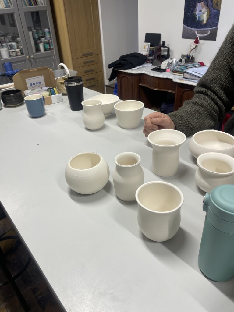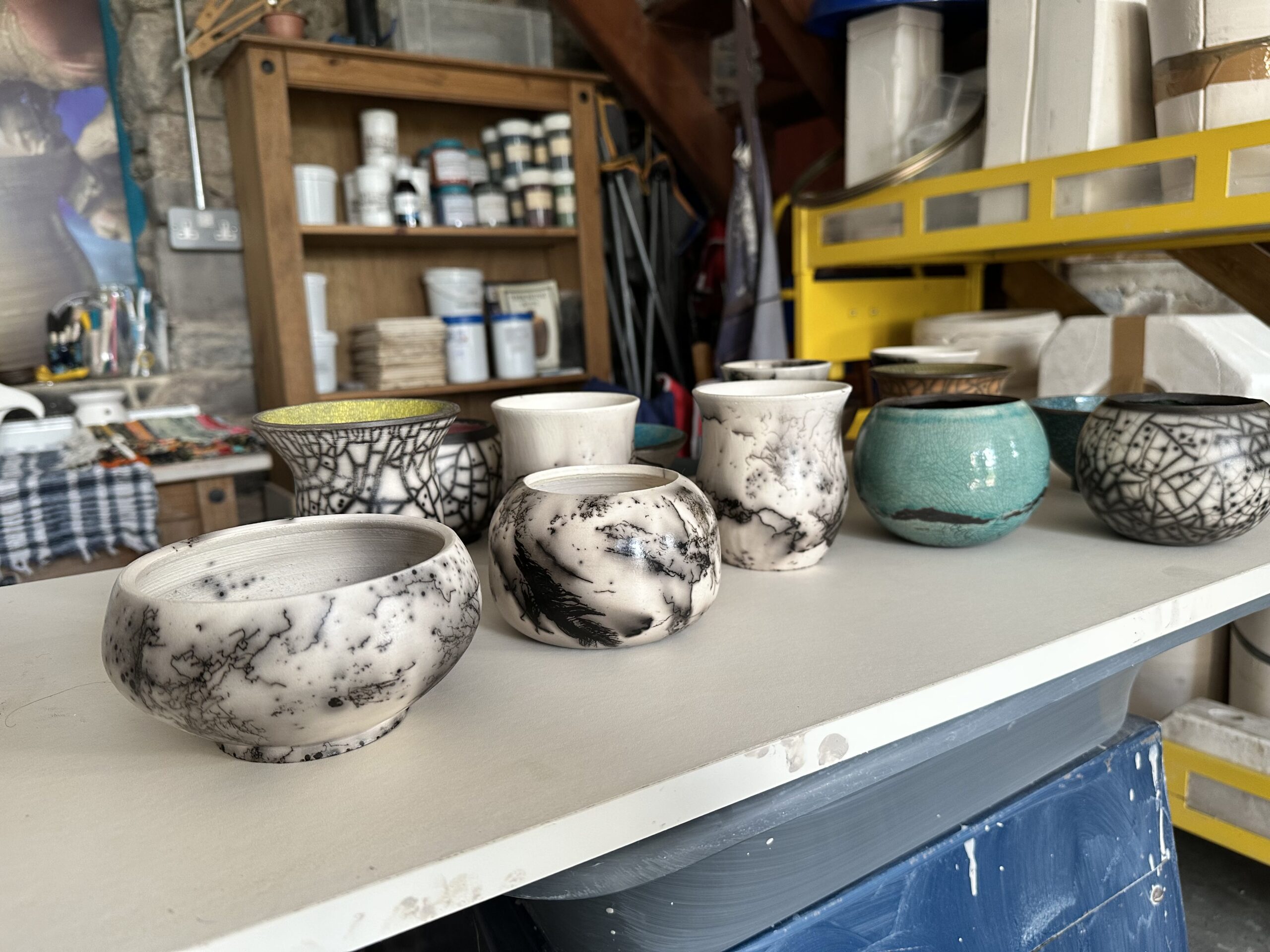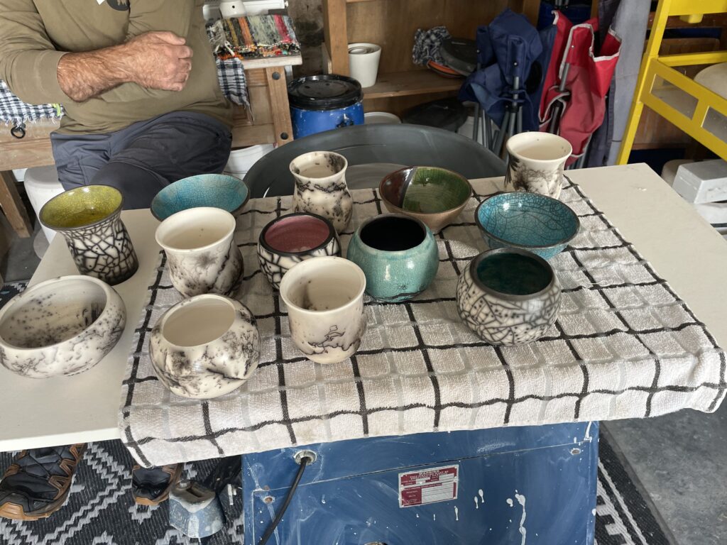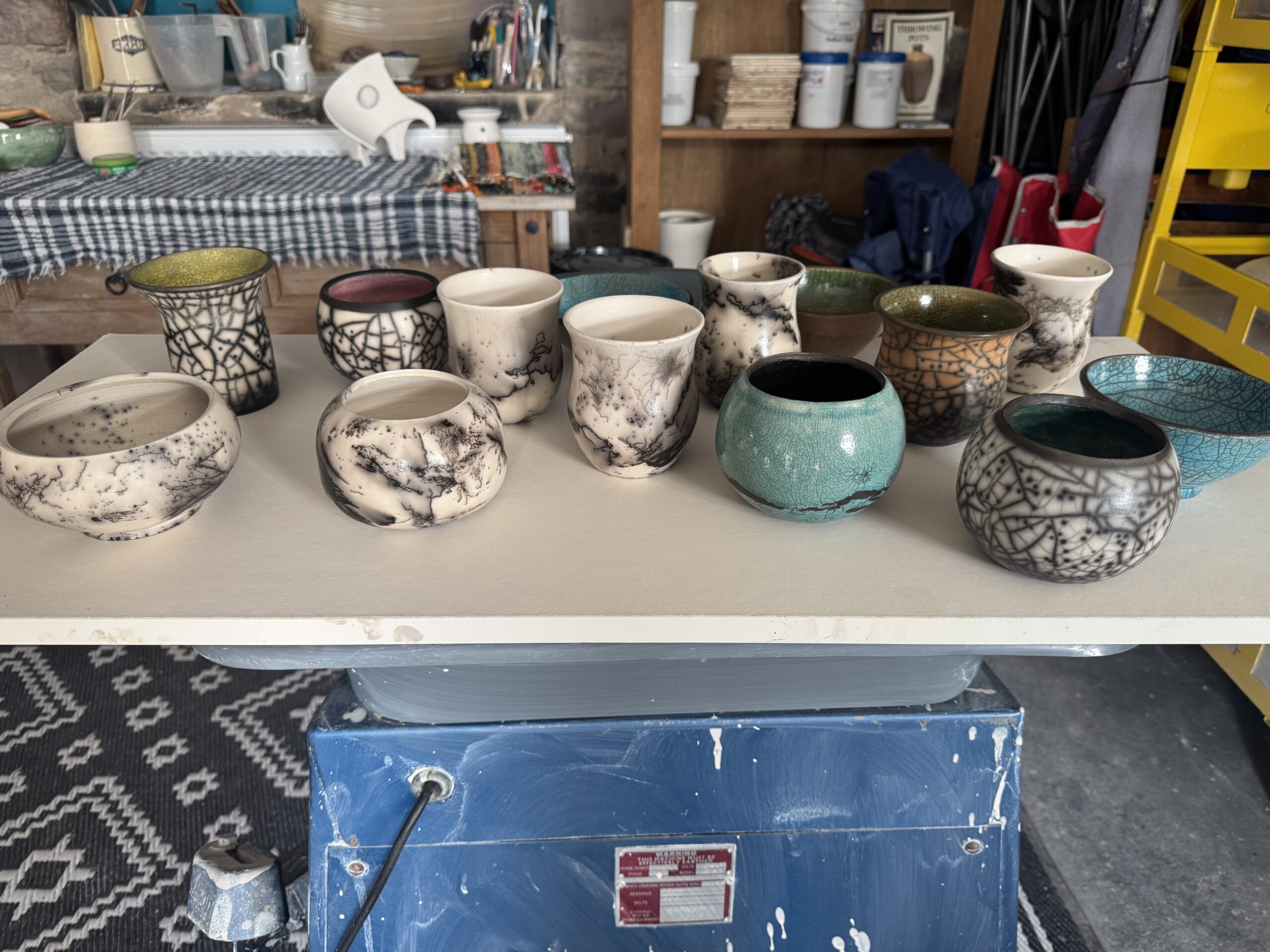 Its Monday morning, not our usual Raku day but we try spread them out to cater for as many students as possible. Today is also a first, equal numbers of males and females. Our classes tend to attract more ladies but all the chaps we have ever had, have all had a great time with a couple of them coming back.