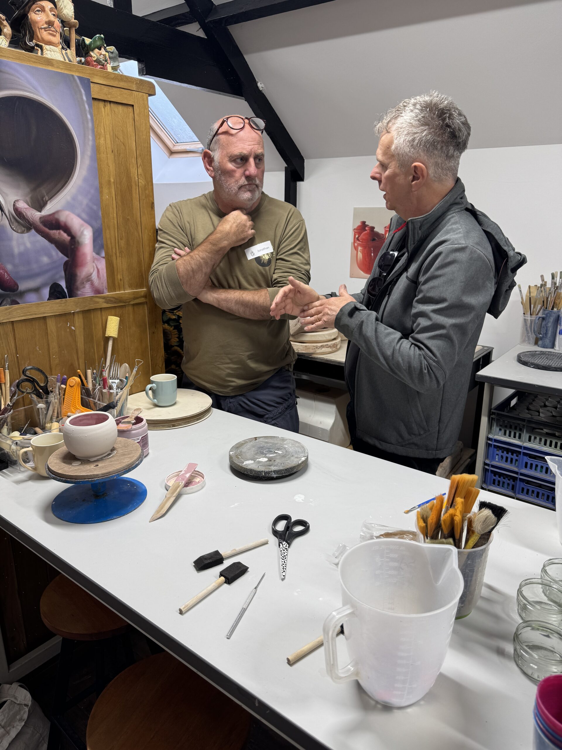 Karen and Adrian, then spoke about the different styles of Raku they do and how to achieve the different results. As usual everyone loved the horse hair / feather technique – the most distant from any original Raku work from Japan.  In fact, Westernised Raku bares little to no resemblance to true Japanese Raku.