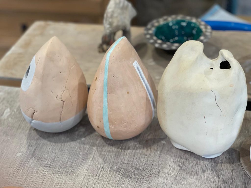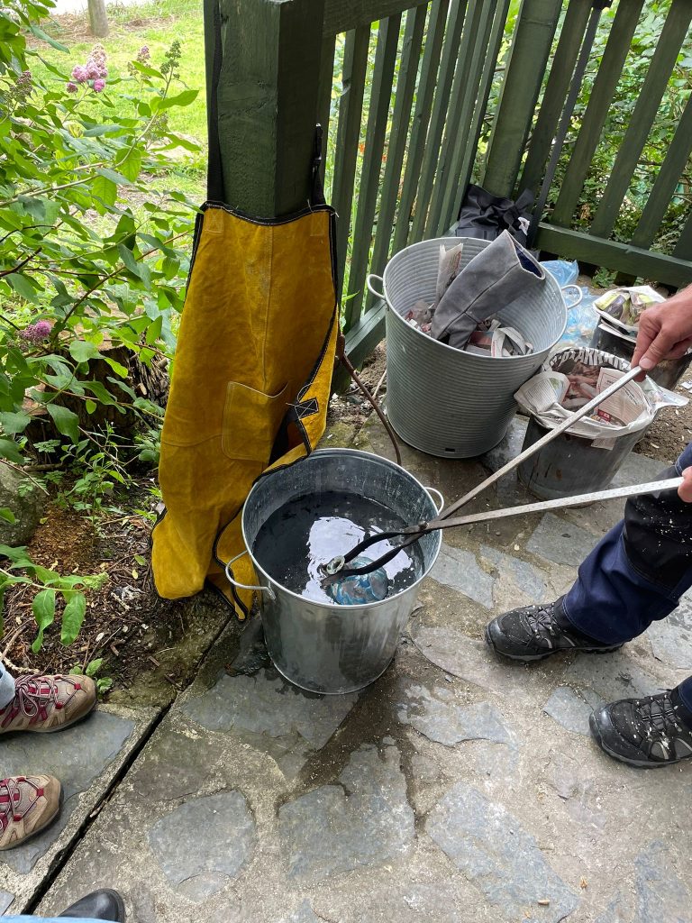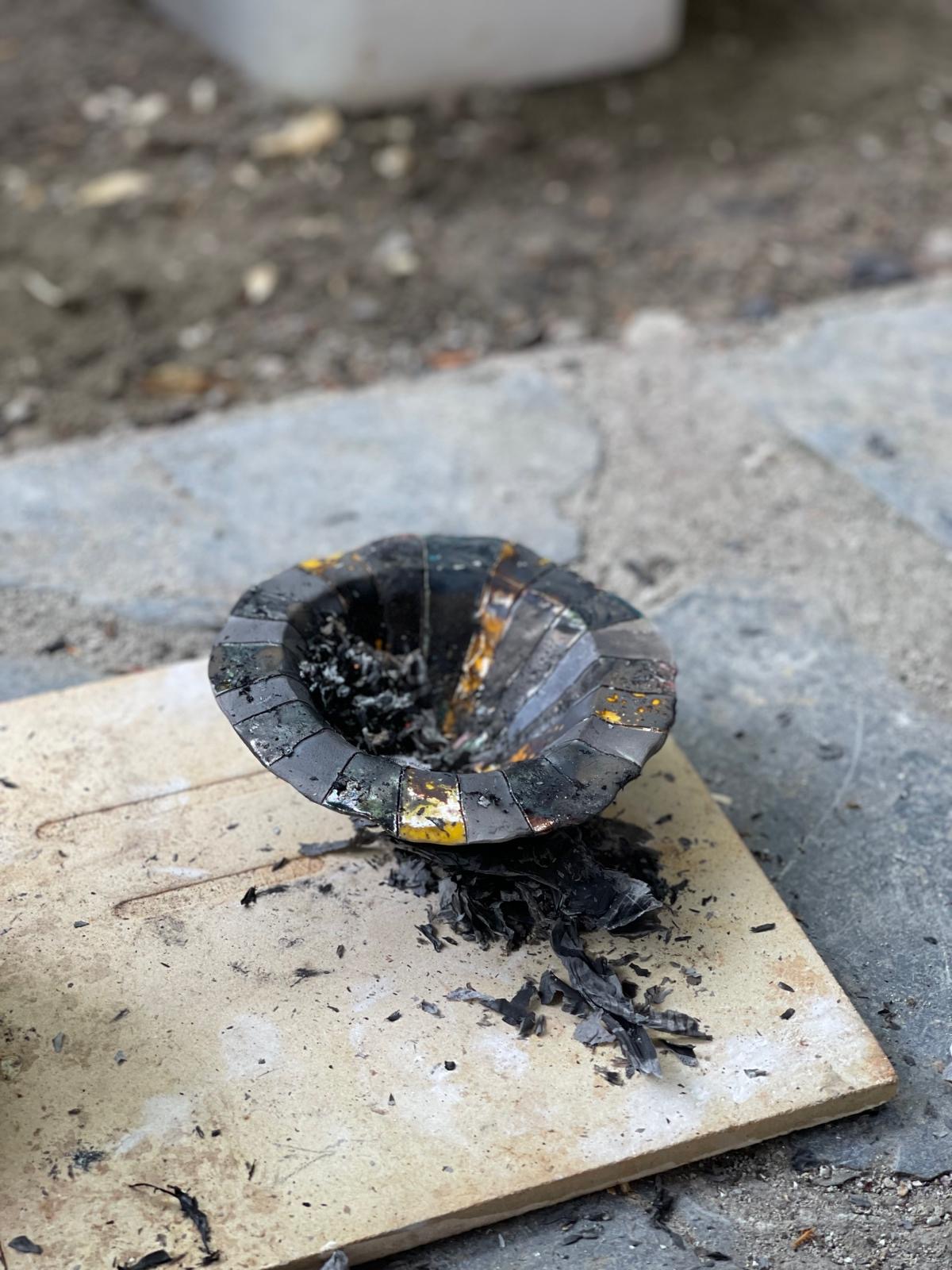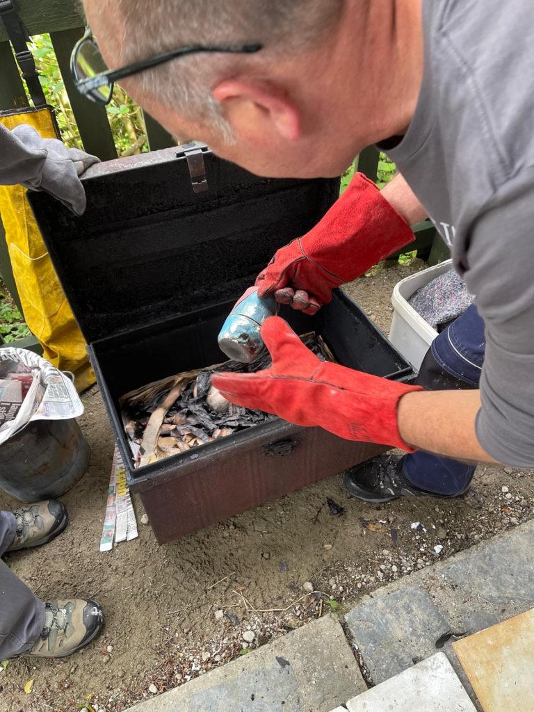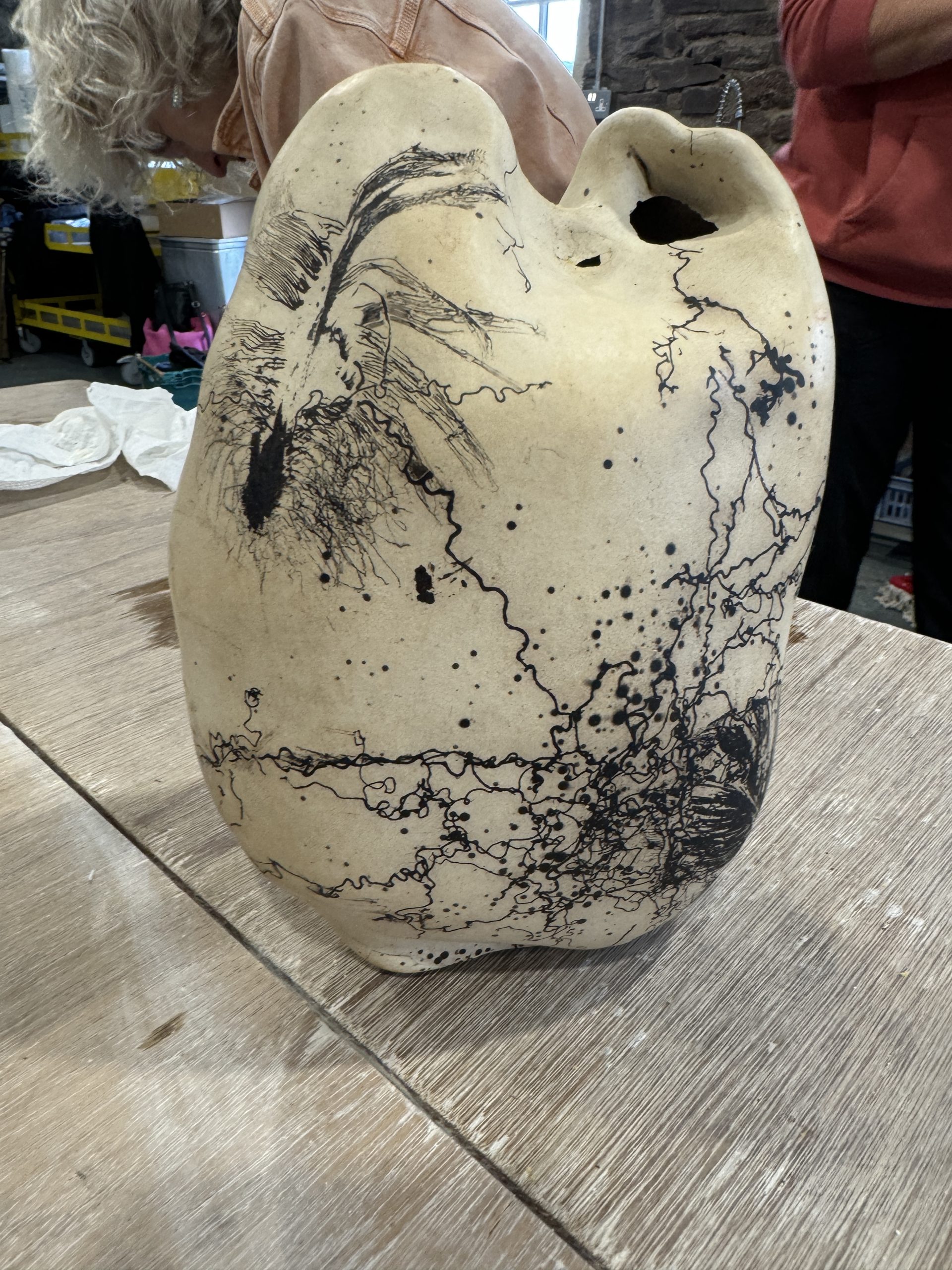 We had two firings before lunch and 4 after as we had quite a few pots to fire and some of them on the slightly bigger side. Happy to say all the hand-built pots (and non-Raku clay pots 😊) survived the firing and reduction process. There were some interesting experiments with designs and glazes, and we had some wonderful outcomes….even Claire was happy with one of her pots !