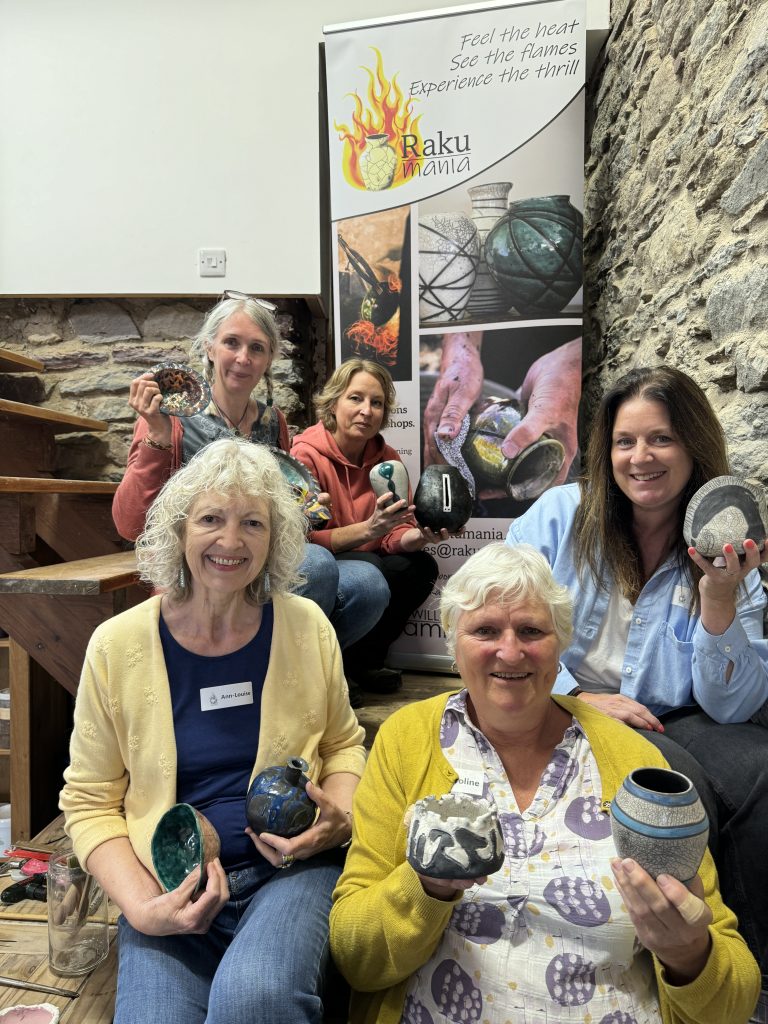 With great excitement all the pots / creations came out and there were big discussions about how best to decorate / glaze them. Adrian and Karen were on hand to give some advice as to what might work best dependent on the shape and finish of the pot. A few RakuMania pots were also bought for some of the participants to finish off. One of the students, an accomplished potter and pottery teacher had also made some of her own glazes, so an interesting day it was to be.